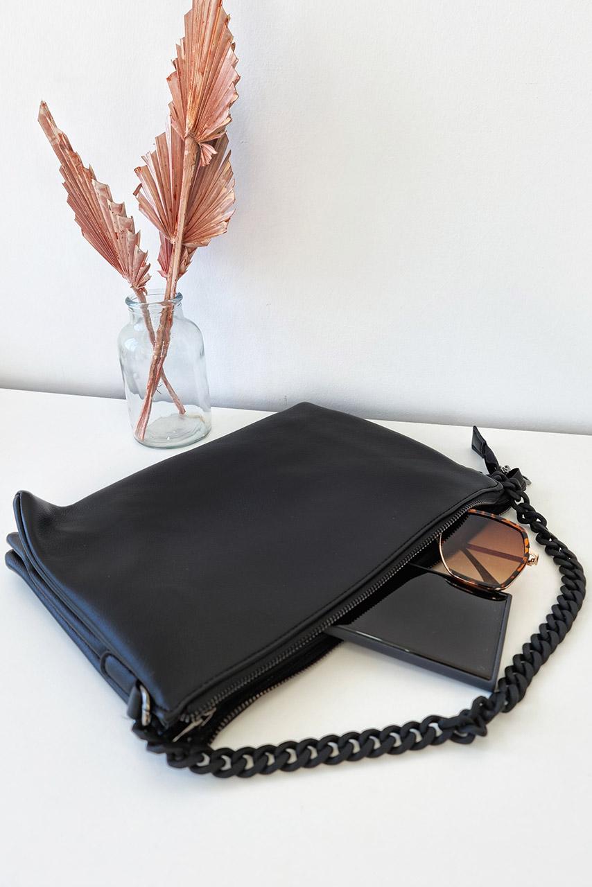 Rock glam μικρό clutch τσαντάκι με πλαστική αλυσίδα και φερμουάρ σε μαύρο χρώμα.