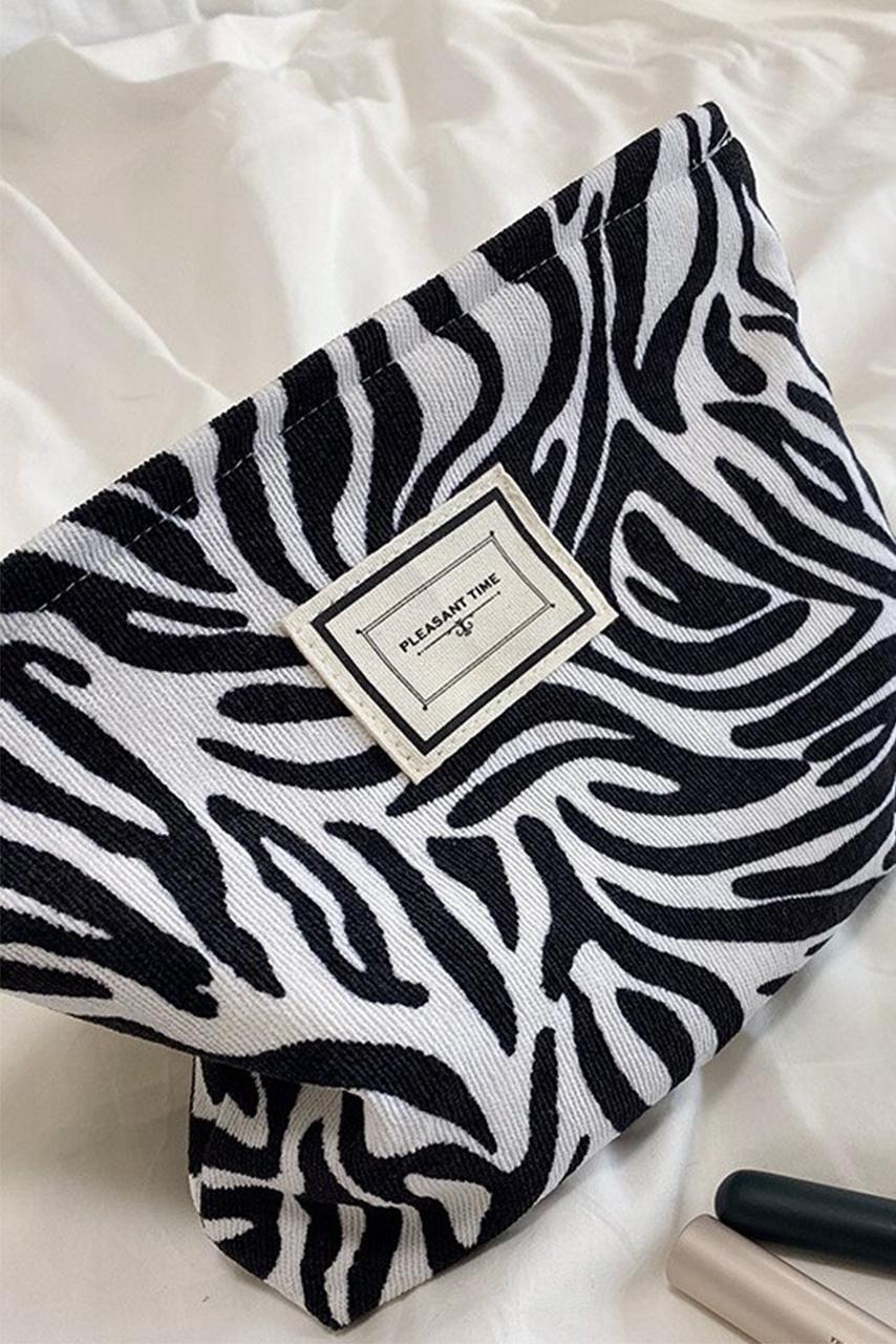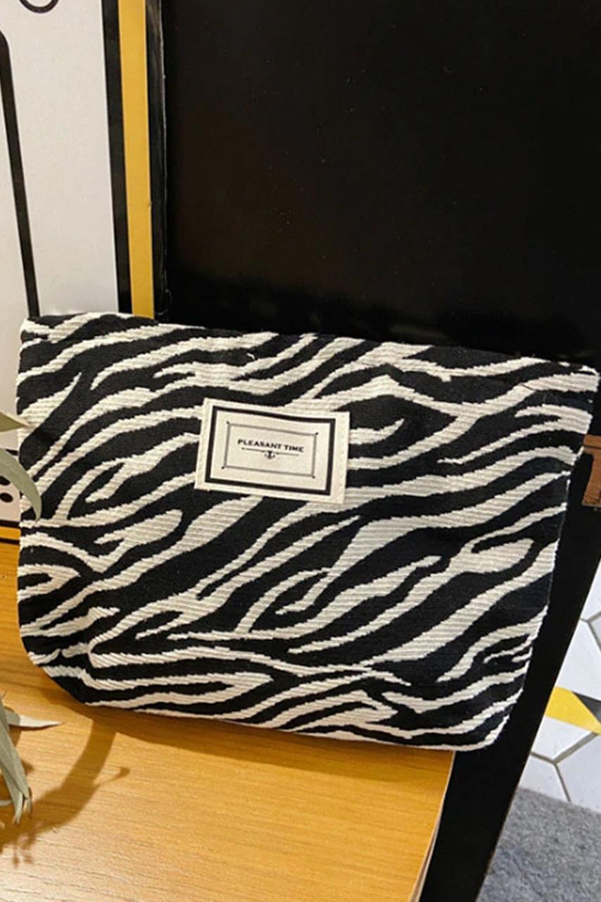90s inspired zebra pattern linen τσαντάκι νεσεσέρ φάκελος σε ασπρόμαυρο χρώμα με φερμουάρ.