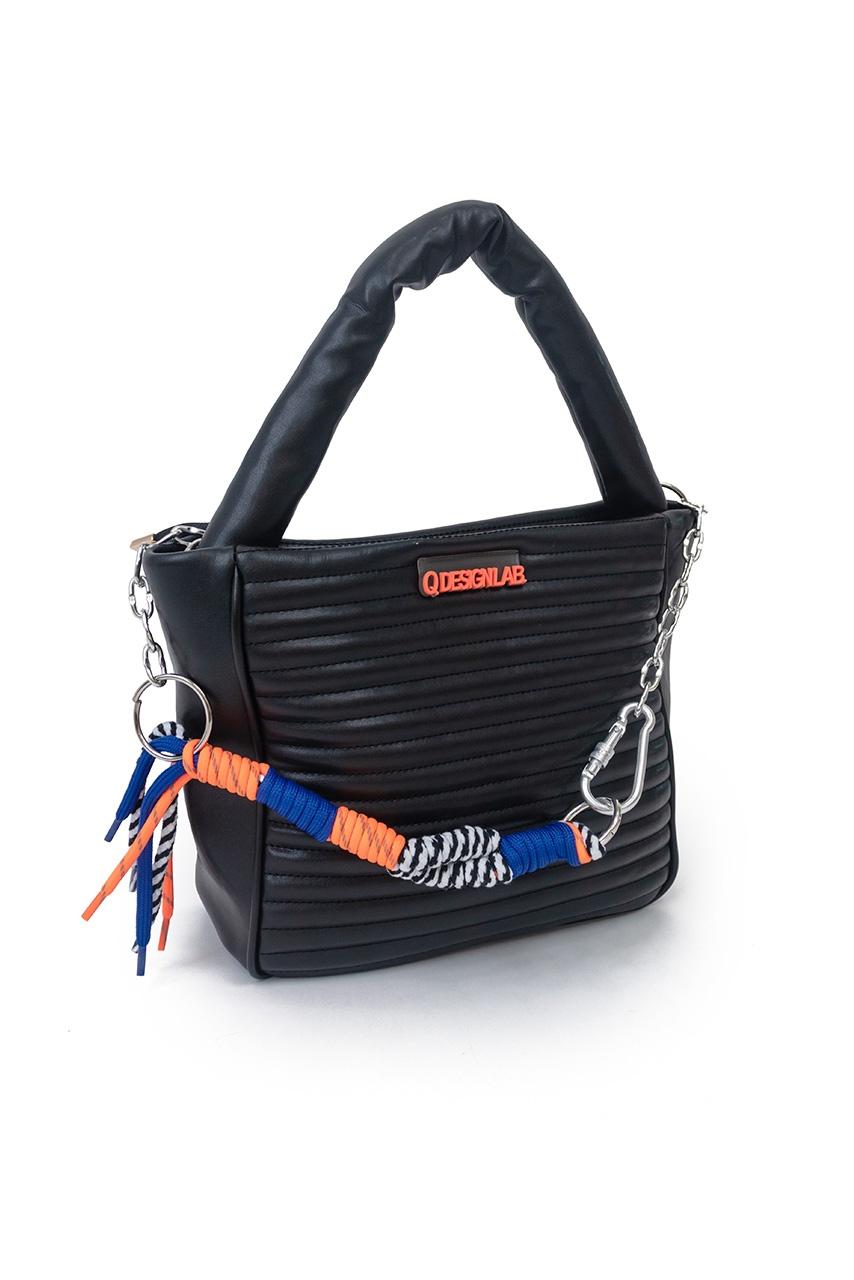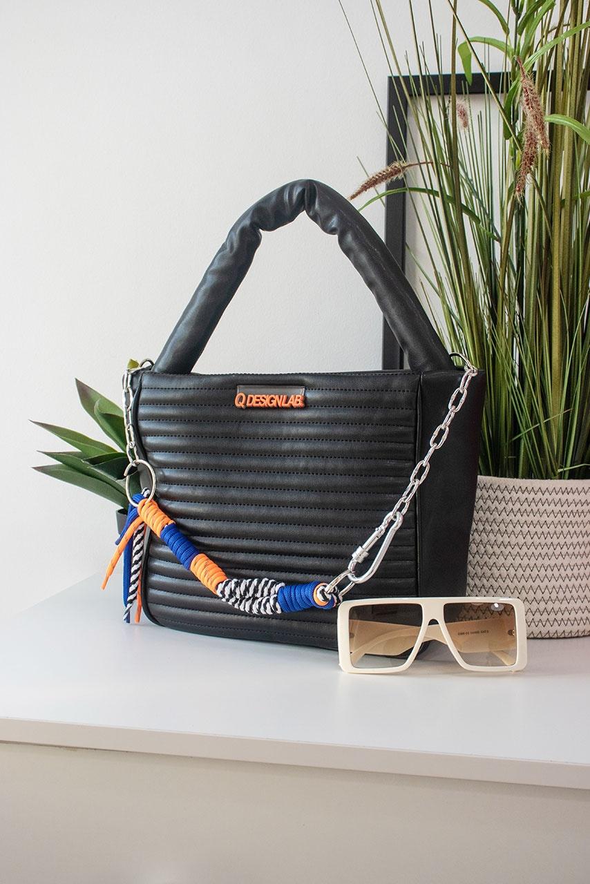 Pop inspired τσάντα ώμου μαύρη σε eco leather υφή με λεπτομέρεια message written φλούο γράμματα μπροστά και colourblocking λεπτομέρεια πολύχρωμο κορδόνι με κλωστές.