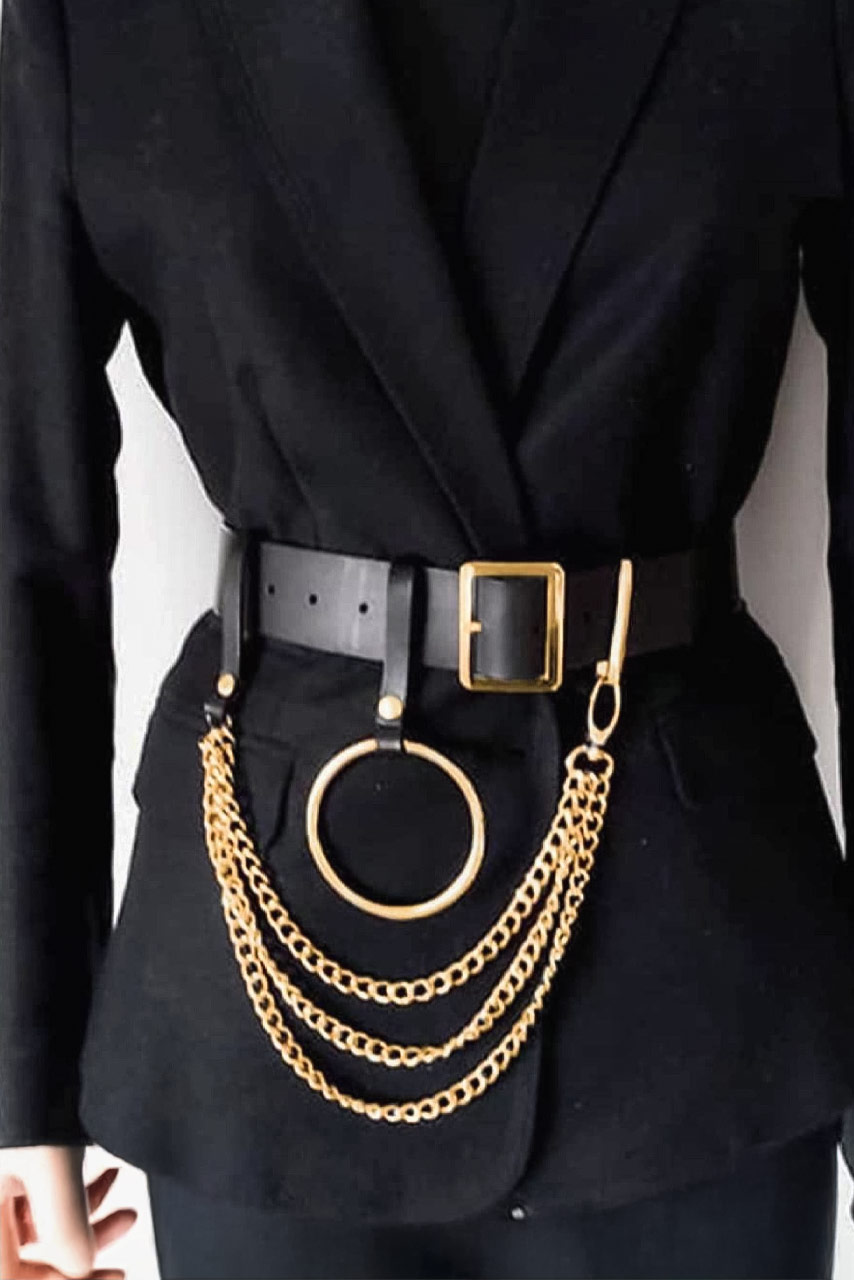 Ζώνη μαύρη με διακοσμητικο κρίκο και αλυσίδες