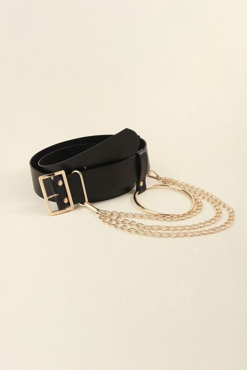 Ζώνη μαύρη με διακοσμητικο κρίκο και αλυσίδες.