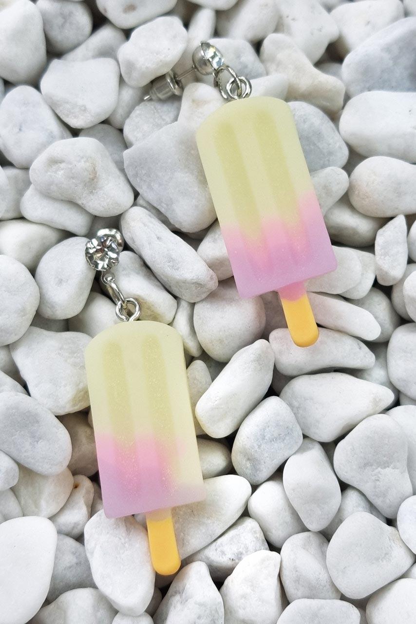 Girly glam σκουλαρίκια σε ροζ και κίτρινο χρώμα και σχήμα παγωτού.
