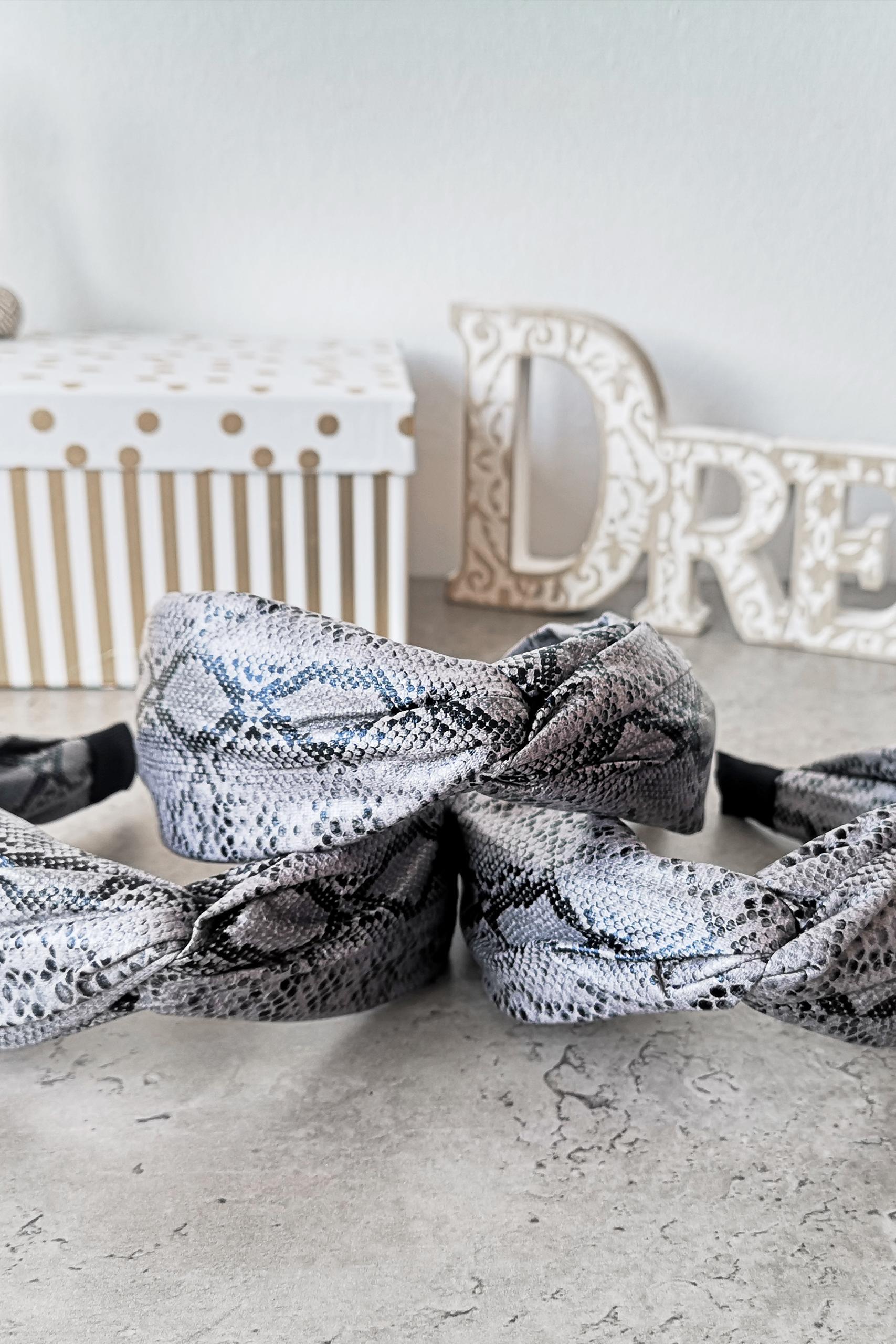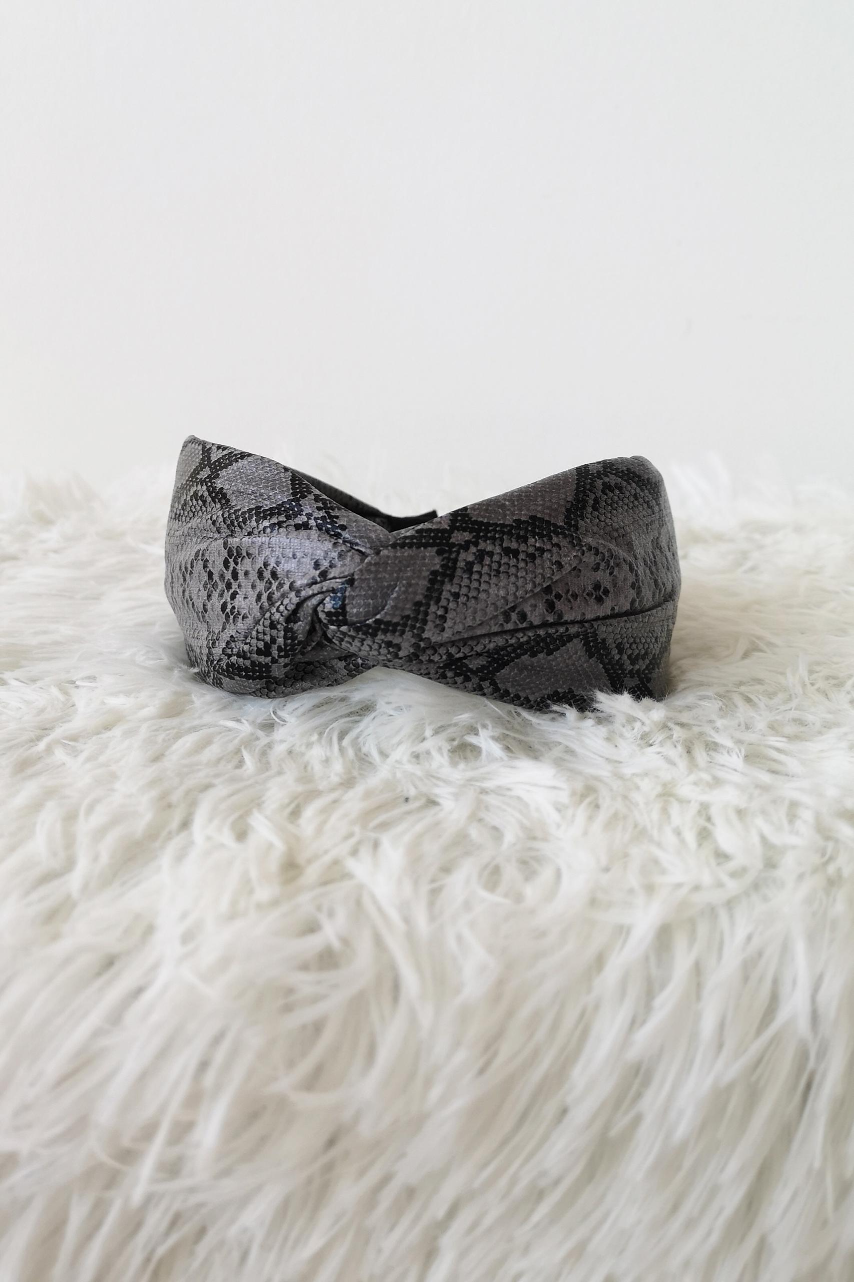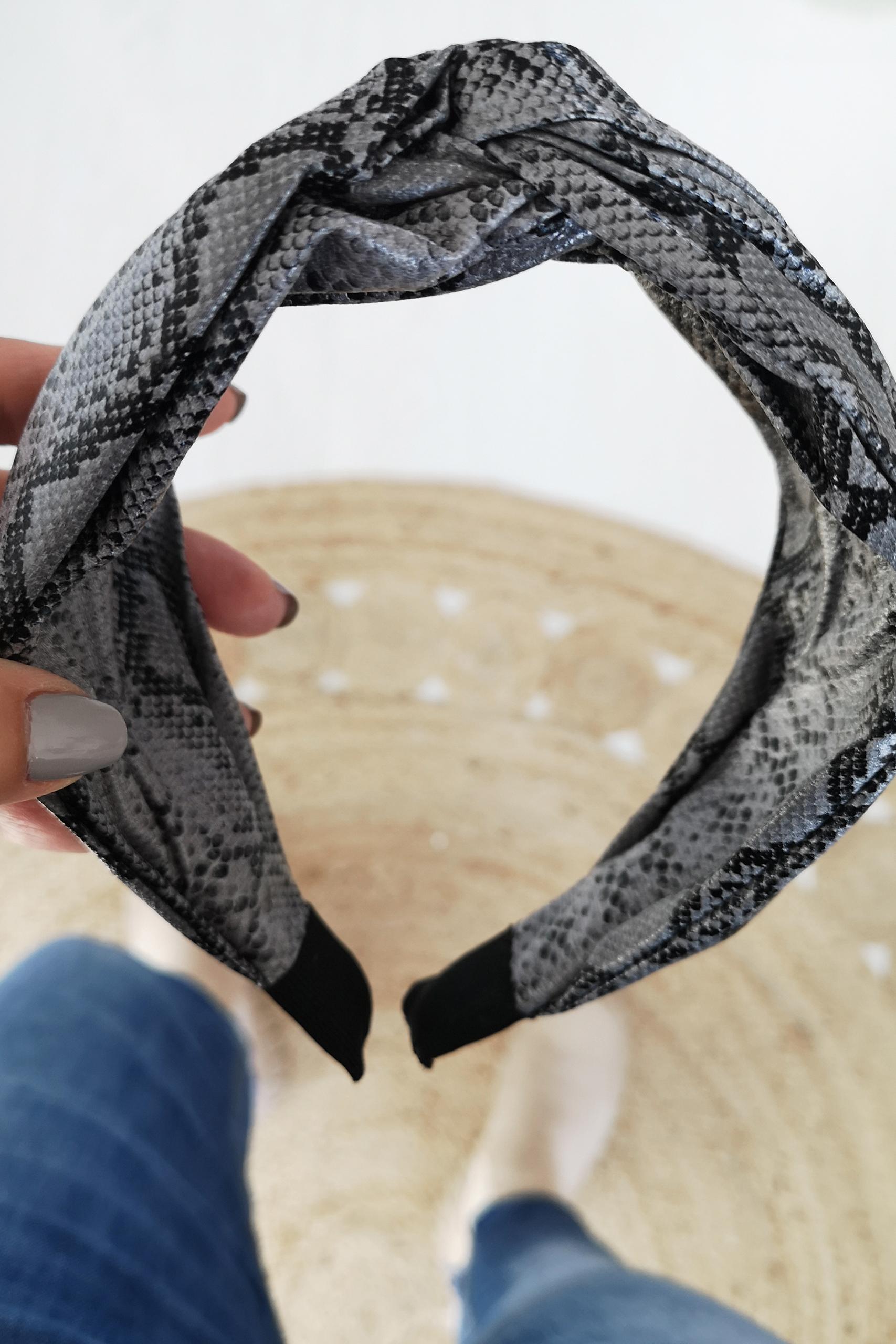 Snakeskin print headband σταθερή στέκα σε γκρι απόχρωση με μαύρες λεπτομέρειες.