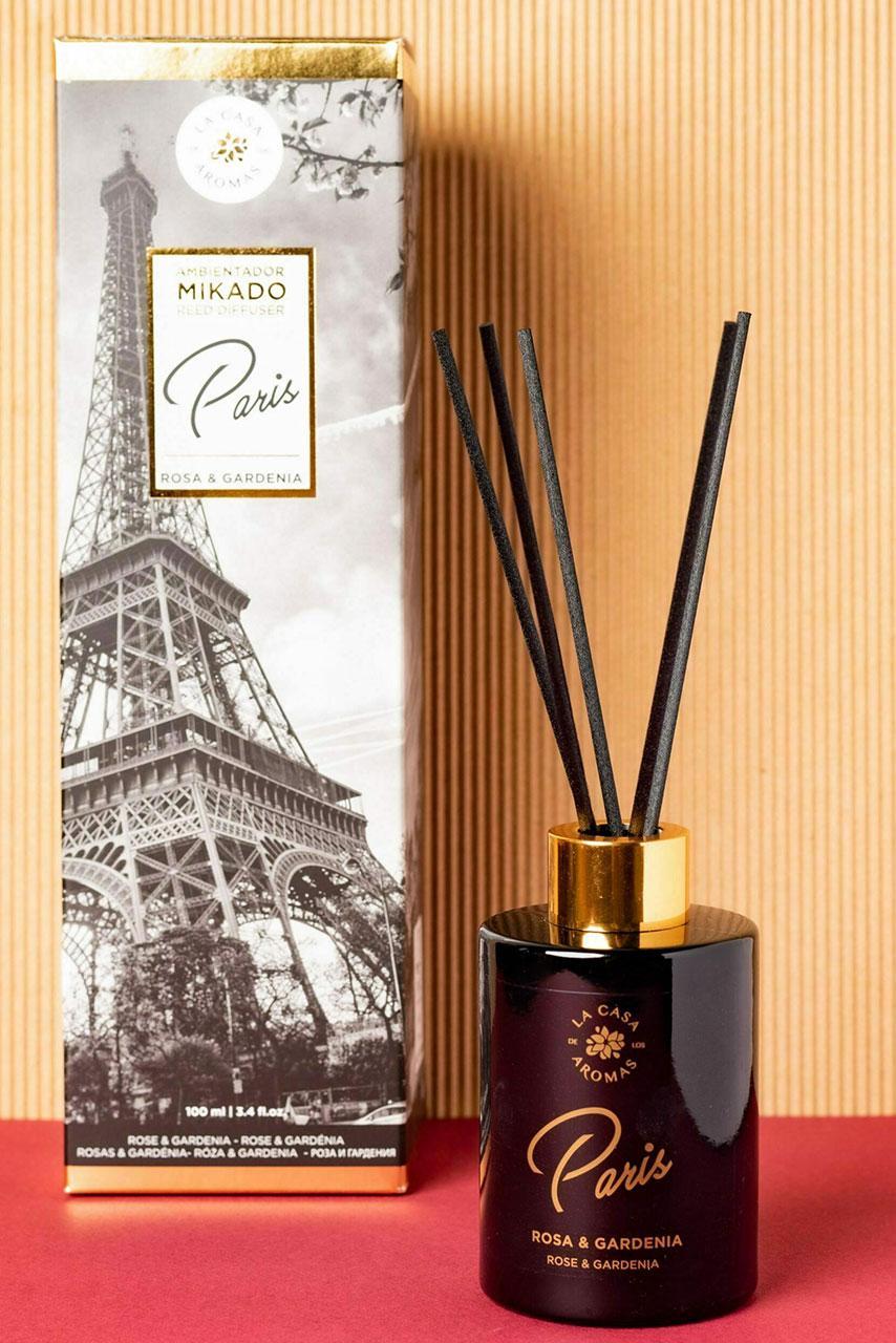 Αρωματικό χώρου με νότες από γαρδένια και τριαντάφυλλο που διαχέεται στο χώρο μέσα από τα στικάκια που έχει στο μπουκάλι.
