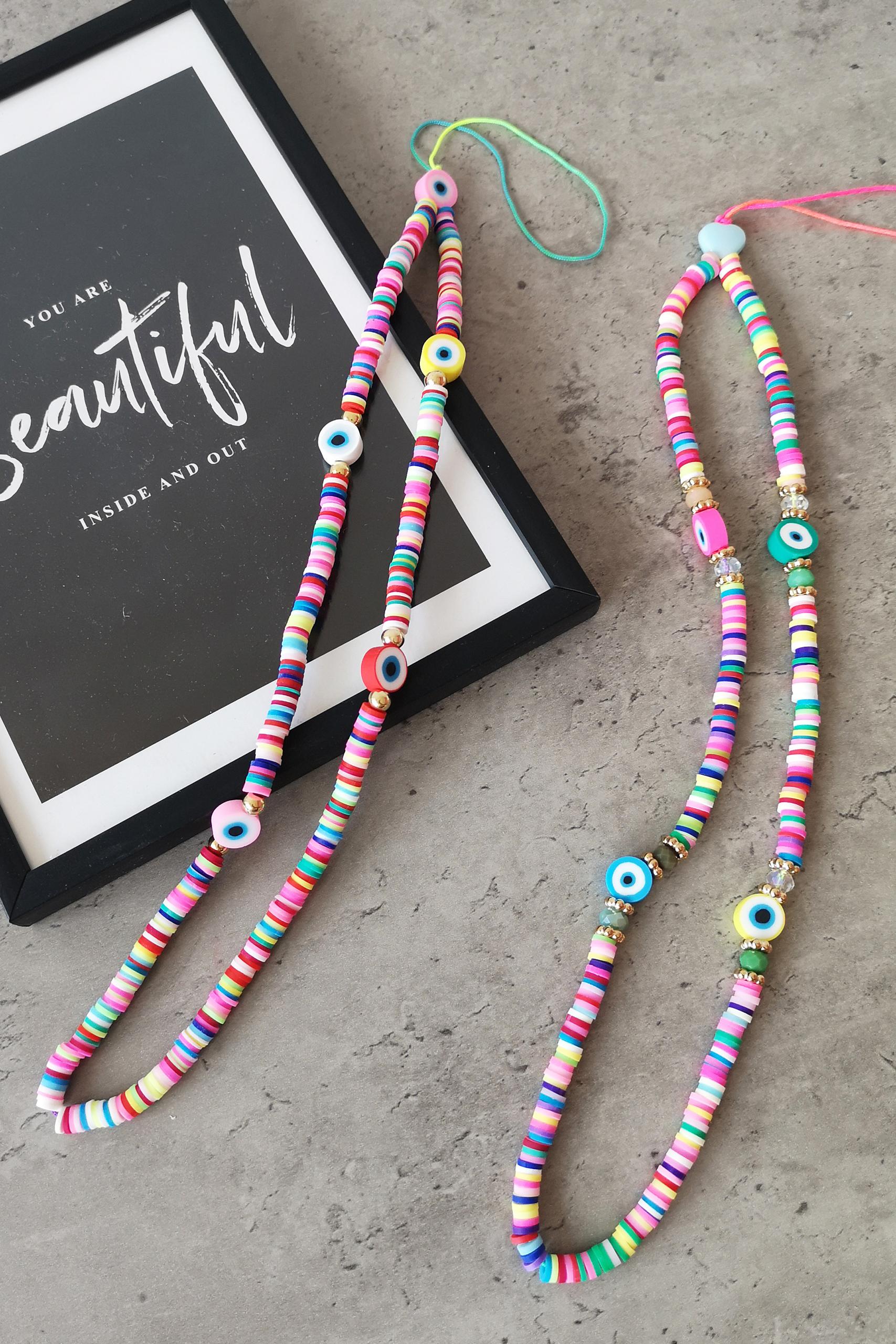 Πολύχρωμα λουράκια κινητού με χάντρες σε πολλά χρώματα και σχέδια.