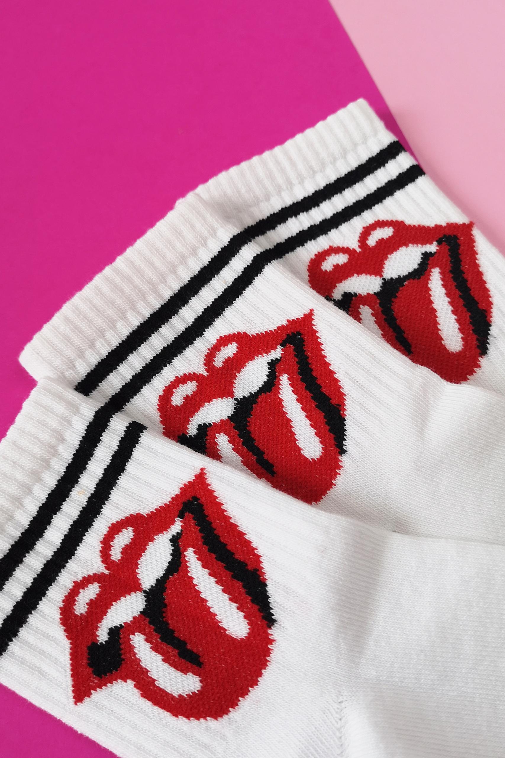 Λευκές αθλητικές κάλτσες με στάμπα rolling stone.