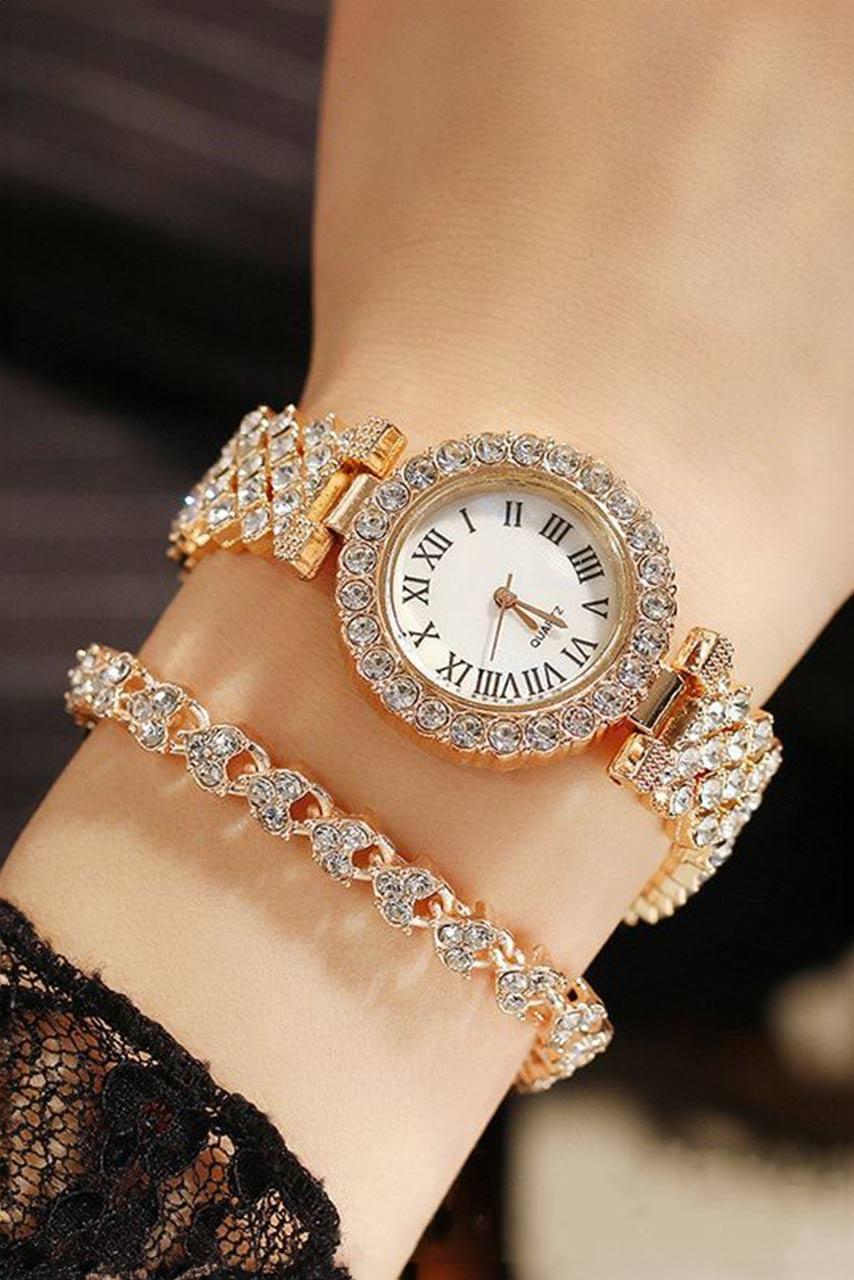 Elegant Ρολόι χειρός με διακοσμητικές πέτρες σε χρυσό