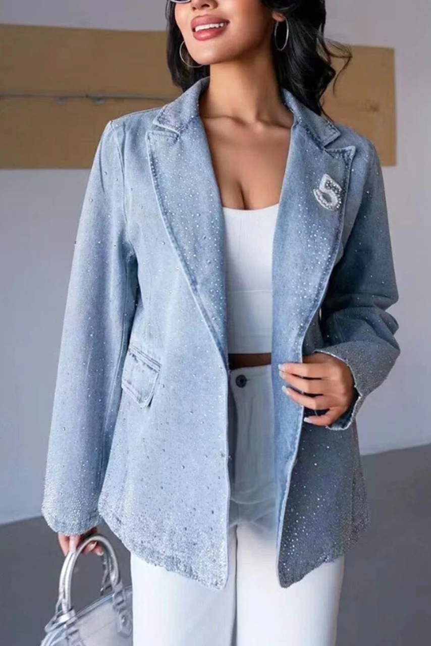 Το denim αποκτά νέο glamorous πρόσωπο! Αυτό το τζιν σακάκι με διακριτικά στρας και διακοσμητικό patch “5” στο πέτο είναι το απόλυτο fashion item για να αναβαθμίσεις κάθε look σου. Το blazer-style κόψιμο του χαρίζει δομημένο αλλά χαλαρό ύφος, ενώ τα λαμπερά στρας προσθέτουν κομψότητα και street-glam αισθητική. Φοριέται ανοιχτό πάνω από τοπ ή buttoned-up για πιο structured εμφανίσεις. Συνδυάζει καθημερινή άνεση με διαχρονική λάμψη και είναι ιδανικό για βόλτες, δουλειά ή και πιο επίσημες εξόδους.