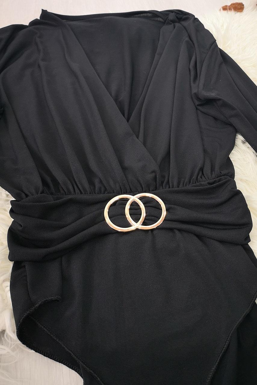 Mαύρο μακρυμάνικο ολόσωμο κορμάκι με βαθύ ντεκολτέ.
