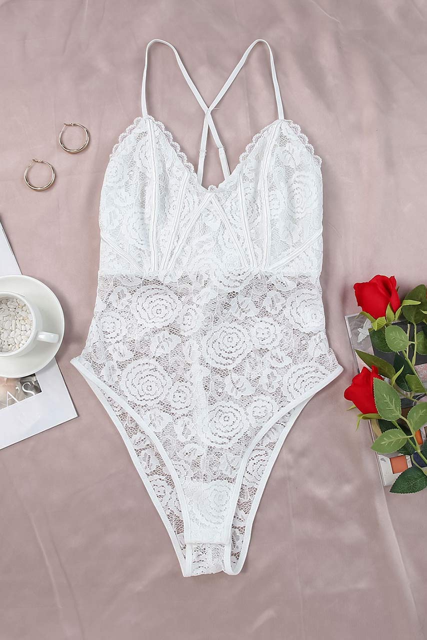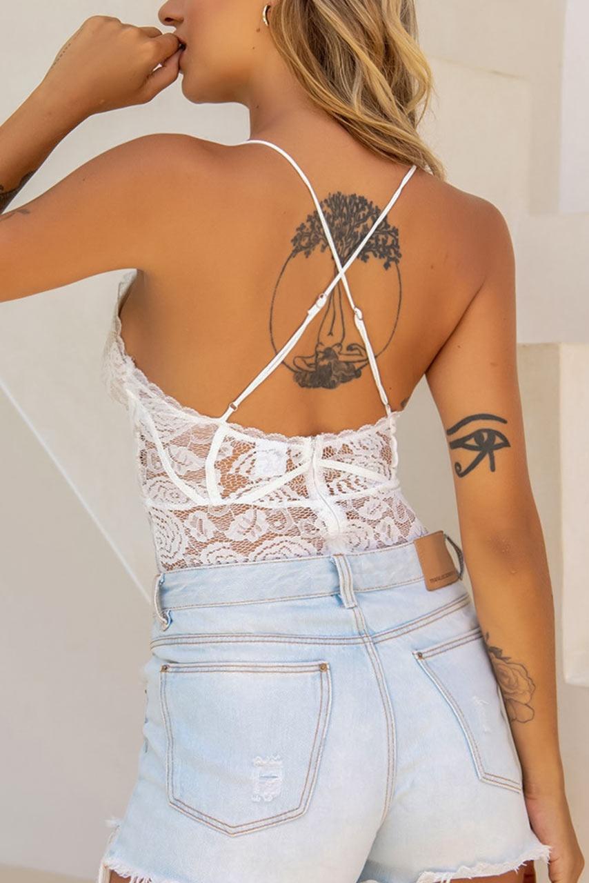 Λευκό ρομαντικό κορμάκι δαντελένιο με σχέδια λουλουδιών. Οι τιράντες στο πίσω μέρος είναι χιαστή και διαθέτει κούμπωμα από κάτω. Ένα κορμάκι που θα λατρέψεις να το φοράς το καλοκαίρι με το τζίν σορτσάκι σου.