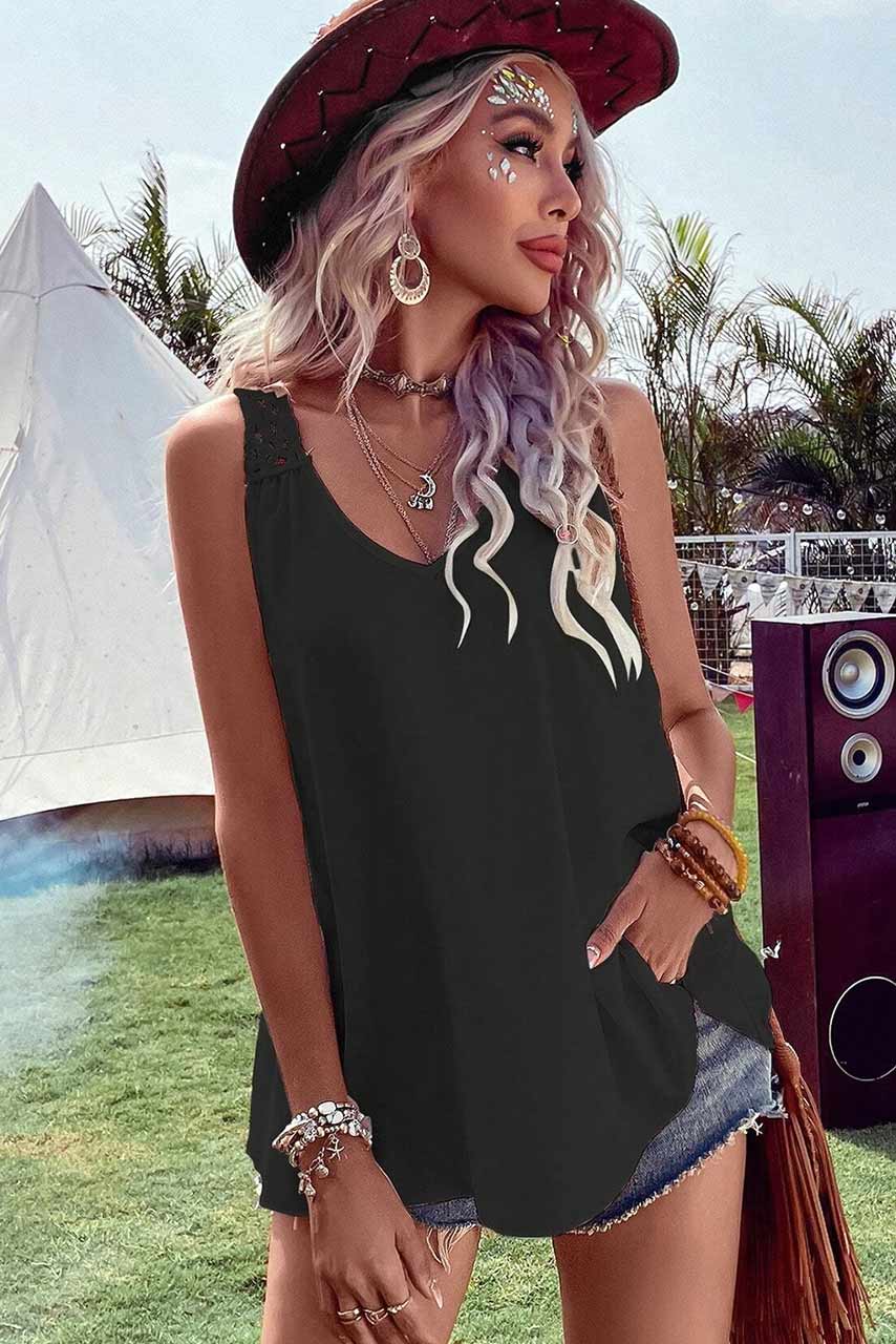 Boho αμάνικη μπλούζα με V λαιμόκοψη και κέντημα στην πλάτη.