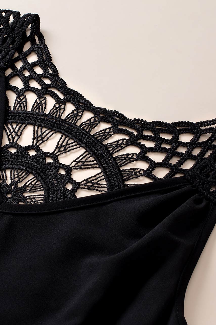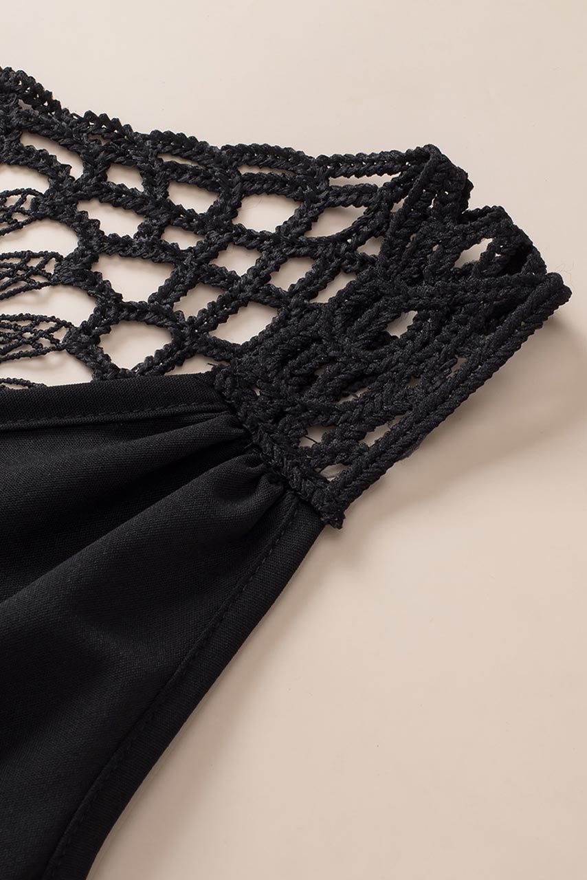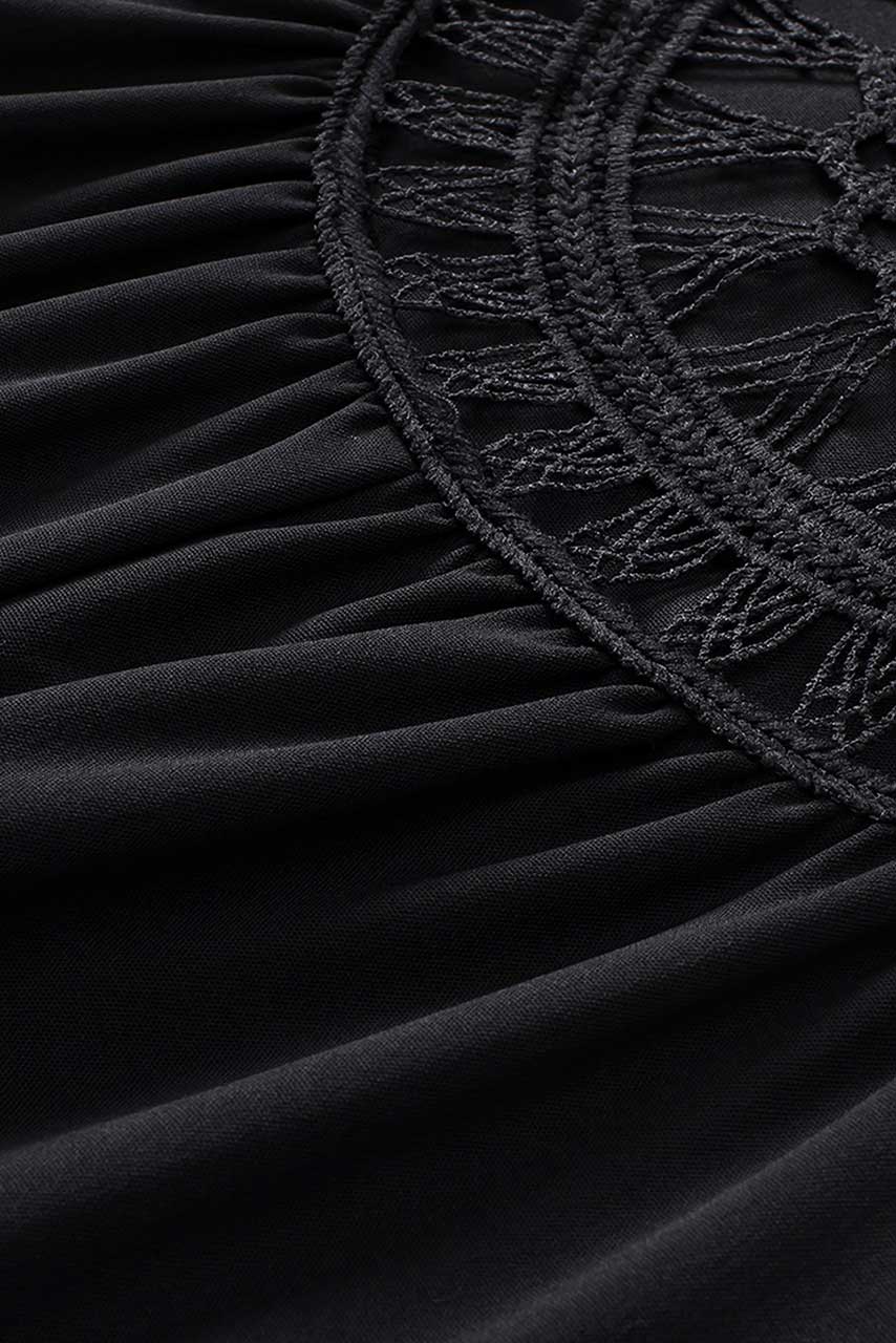 Boho μπλούζα tunic με πλέξιμο σε μαύρο