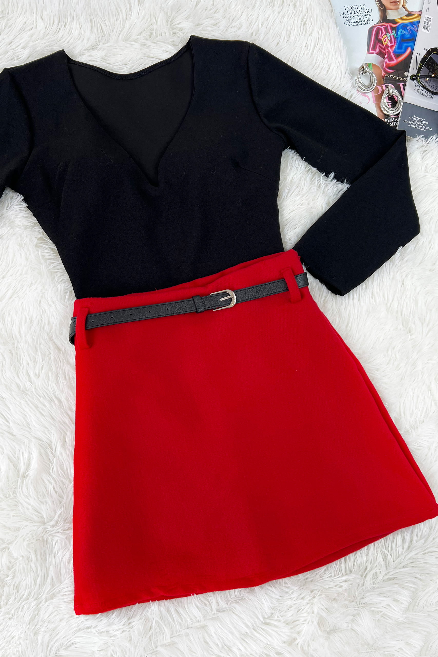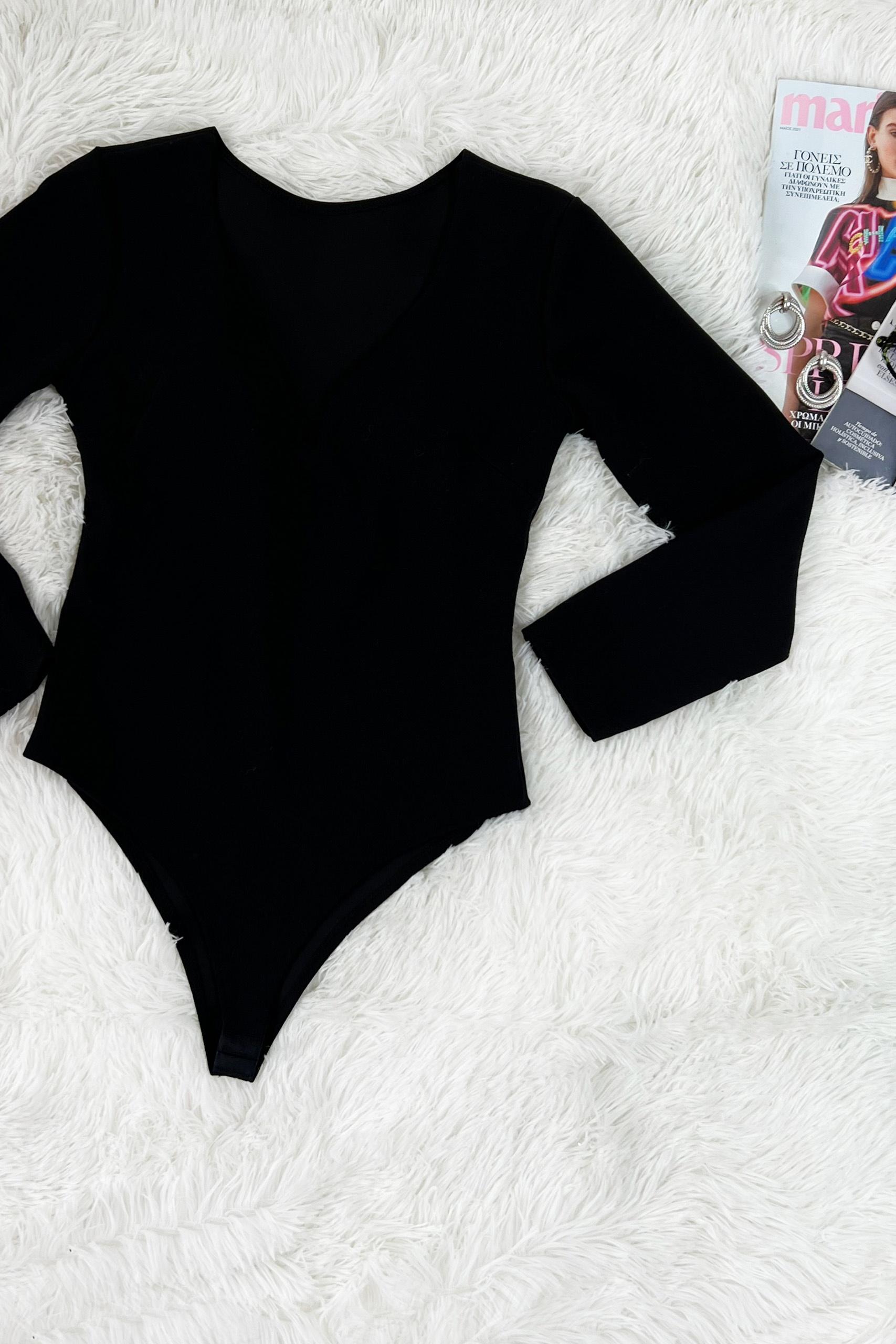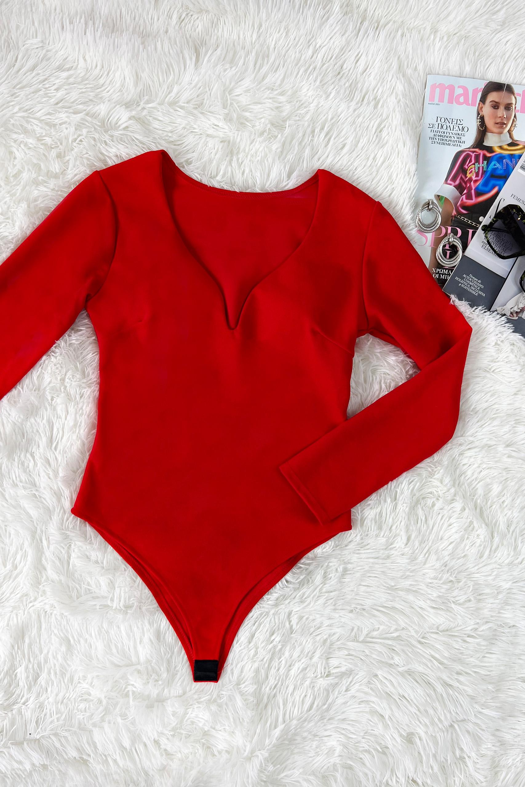 Deep V neck bodysuit μακρυμάνικο κορμάκι σε κλασσικό μαύρο και σε έντονο κόκκινο χρώμα με low V on top.