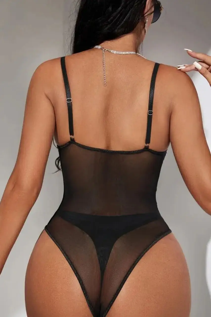 Retro vintage glam κορμάκι με διαφάνειες σε corset style με τιράντες και στενή εφαρμογή σε μαύρο χρώμα.