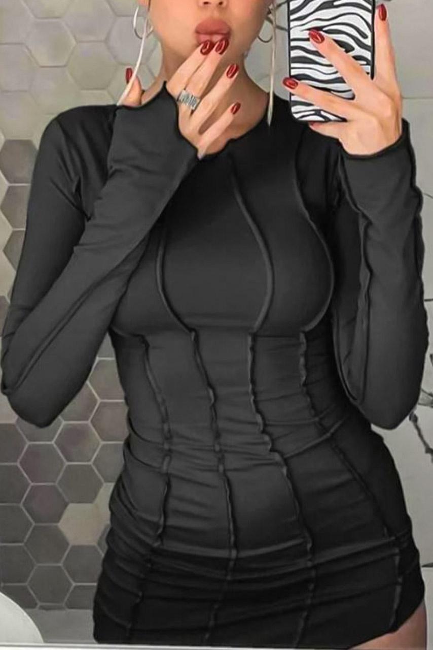 • Φόρεμα μίνι μακρυμάνικο | Ανοιγμα στα μανίκια | Ελαφρώς ασύμμετρο στο τελείωμα