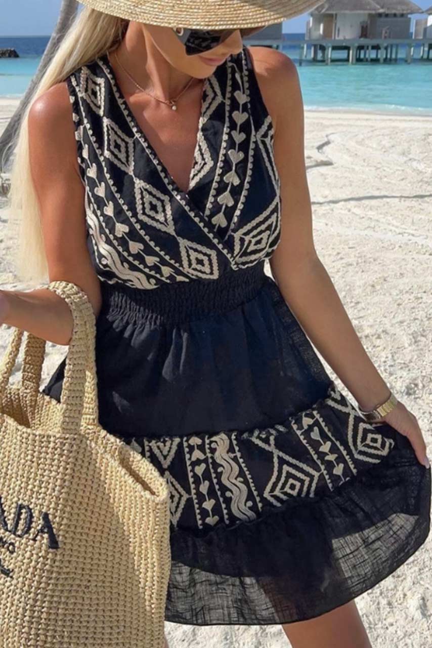 Boho μίνι φόρεμα με χρυσές λεπτομέρειες και ανοιχτή πλάτη. Σουπερ σικ εμφανίσεις ιδανικό για κάθε περίσταση. Διατίθεται σε onesize και καλύπτει έως medium size.