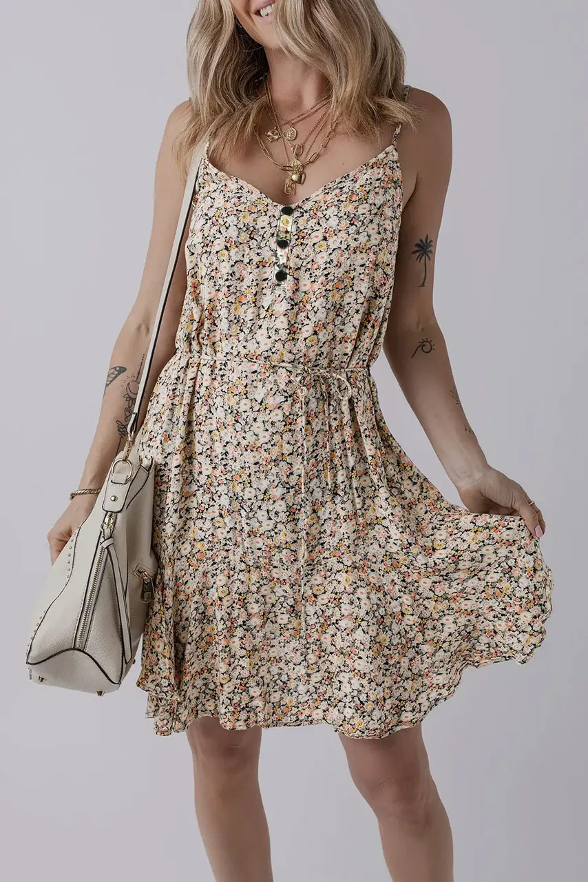 Το απόλυτο boho κομμάτι για το καλοκαίρι μόλις έφτασε. Αυτό το floral μίνι φόρεμα με κουμπιά στο μπροστινό μέρος και λεπτή ζώνη στη μέση είναι φτιαγμένο για ανέμελες μέρες γεμάτες στυλ. Το ανάλαφρο ύφασμα “χορεύει” σε κάθε σου βήμα, ενώ οι διακριτικές τιράντες και η ελαφρώς κρουαζέ γραμμή αναδεικνύουν τη θηλυκότητα σου με τρόπο casual αλλά refined.