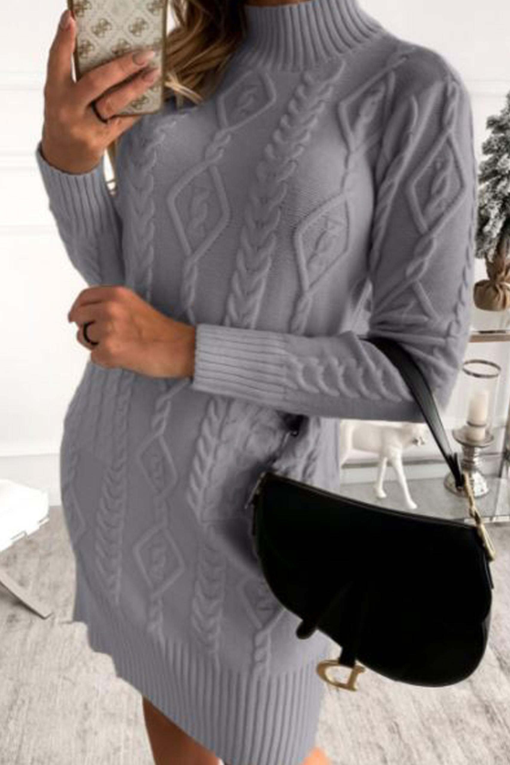 Bodycon braided turtleneck πλεκτό ζιβάγκο στενό φόρεμα σε τρεις ζεστές αποχρώσεις.
