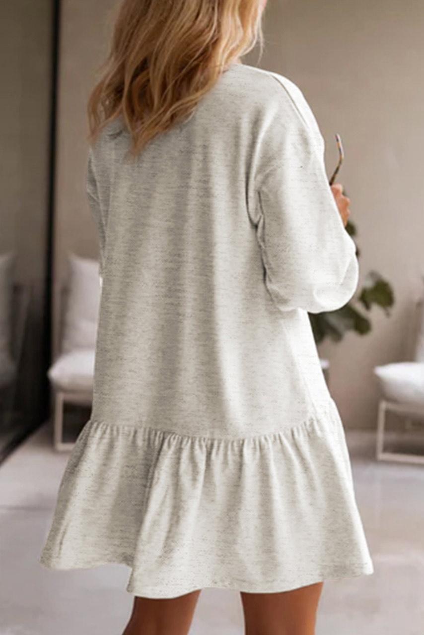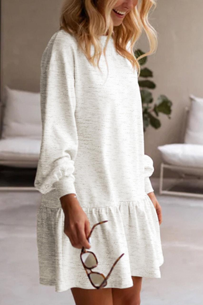 Casual μακρυμάνικο φόρεμα με layers βολάν σε λευκή απόχρωση. Διαθέτει κλειστή λαιμόκοψη και oversized style drop shoulders.