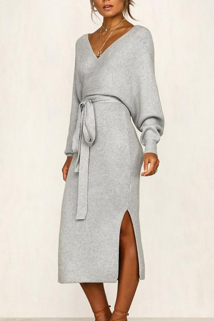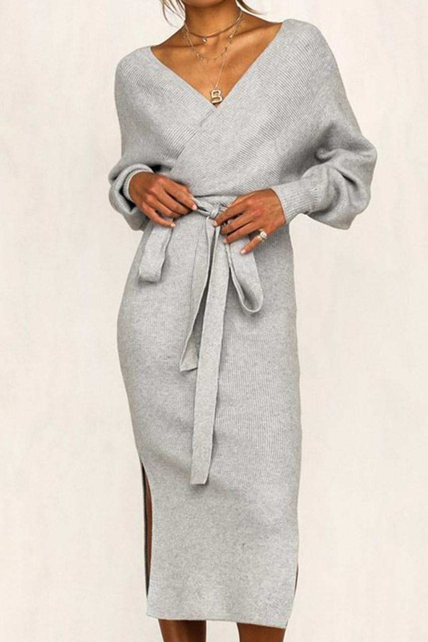 Φόρεμα κρουαζέ με σκίσιμο σε γκρι