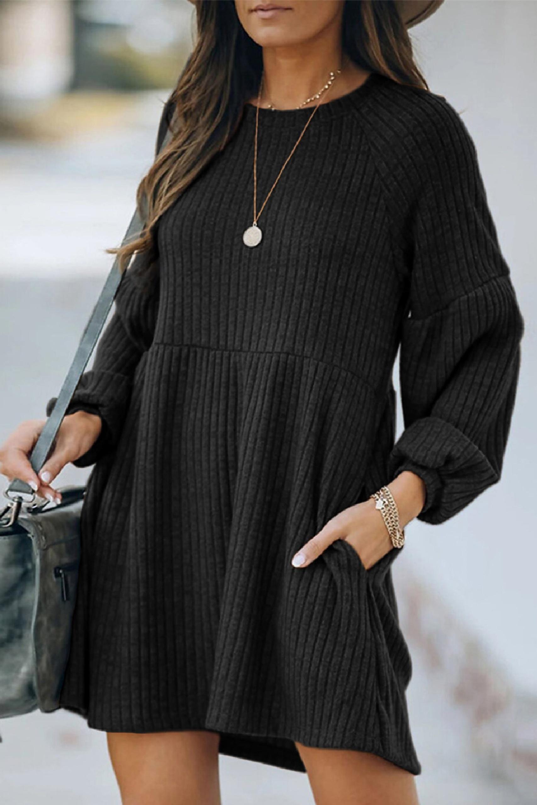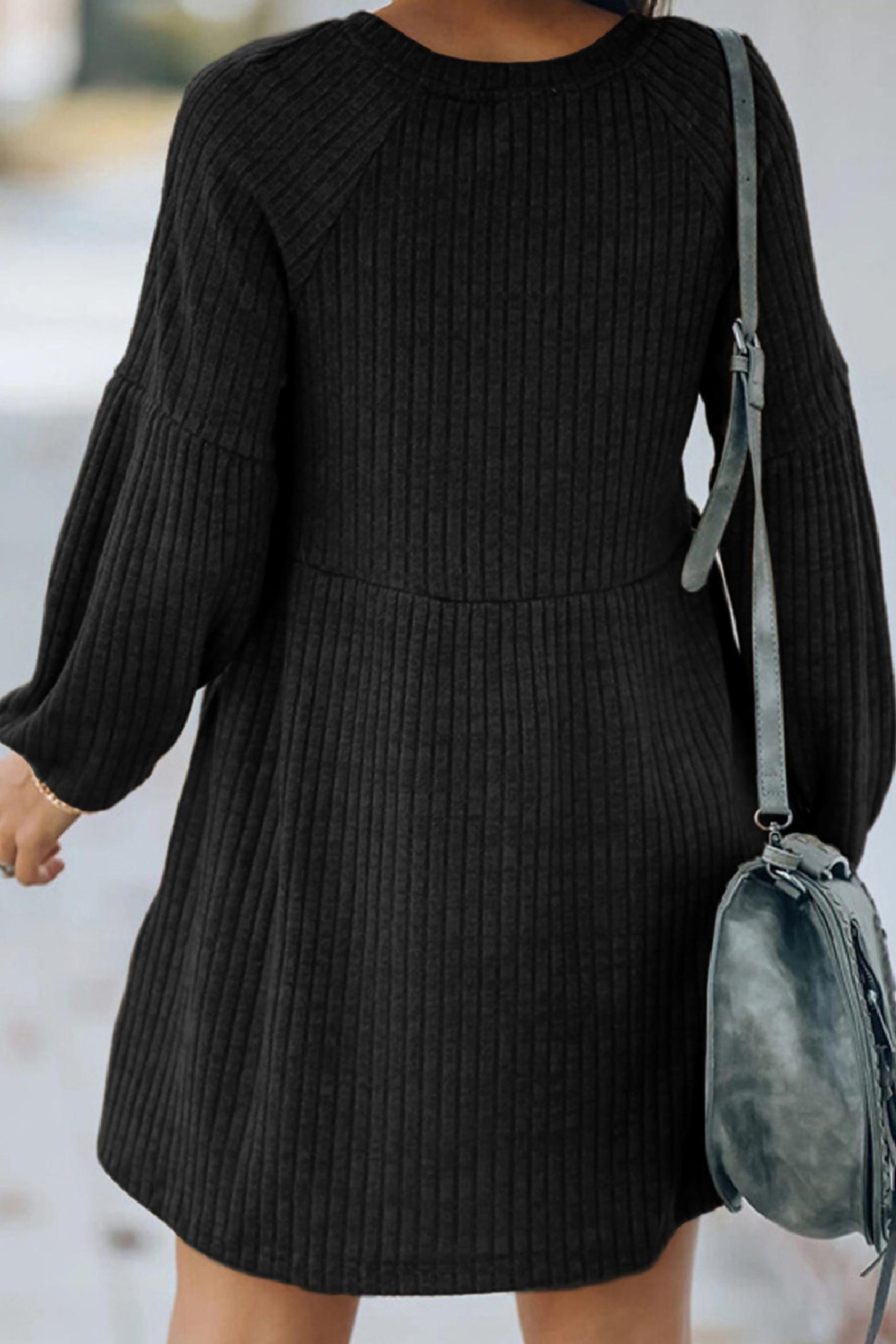 Flare rib dress με balloon μανίκια σε μαύρη απόχρωση.