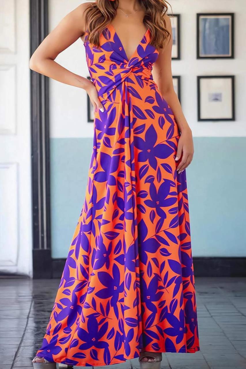 Summer essential φλοράλ contrast φόρεμα σε έντονες αποχρώσεις, με τιράντες και άνοιγμα μπροστά.