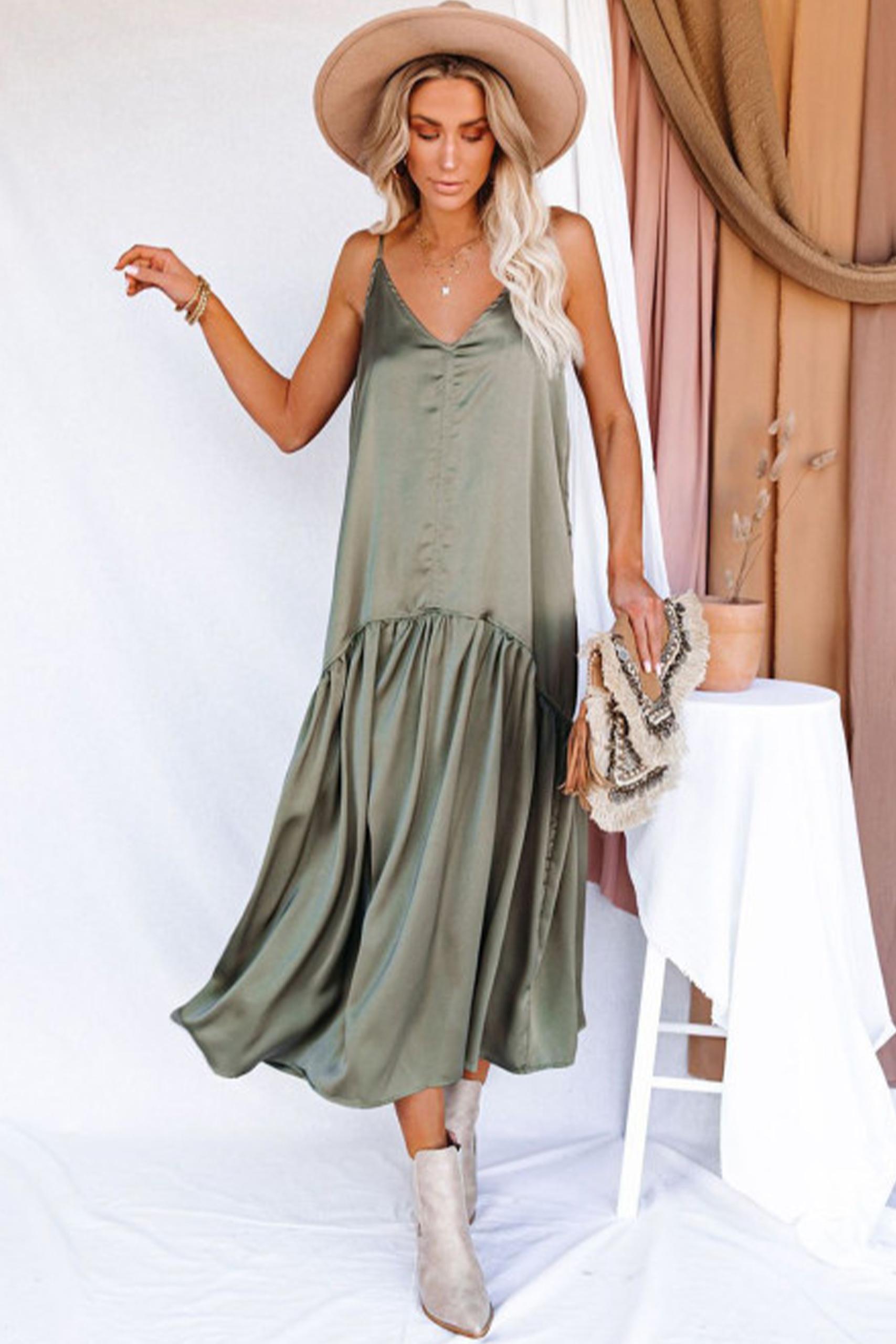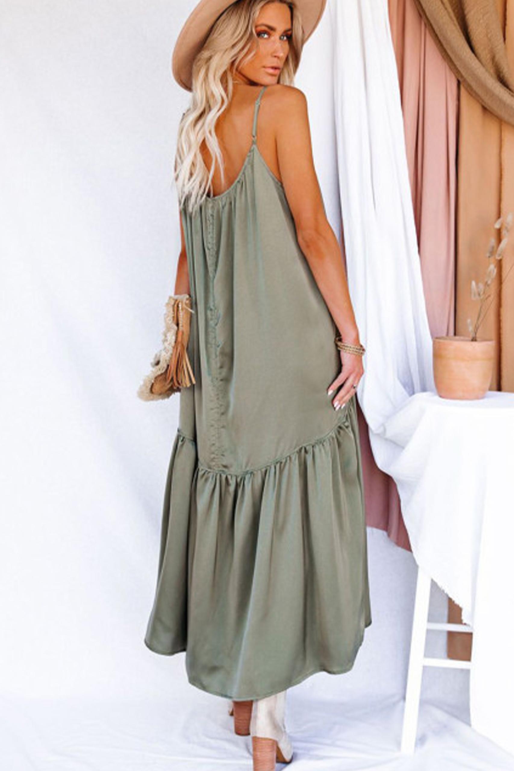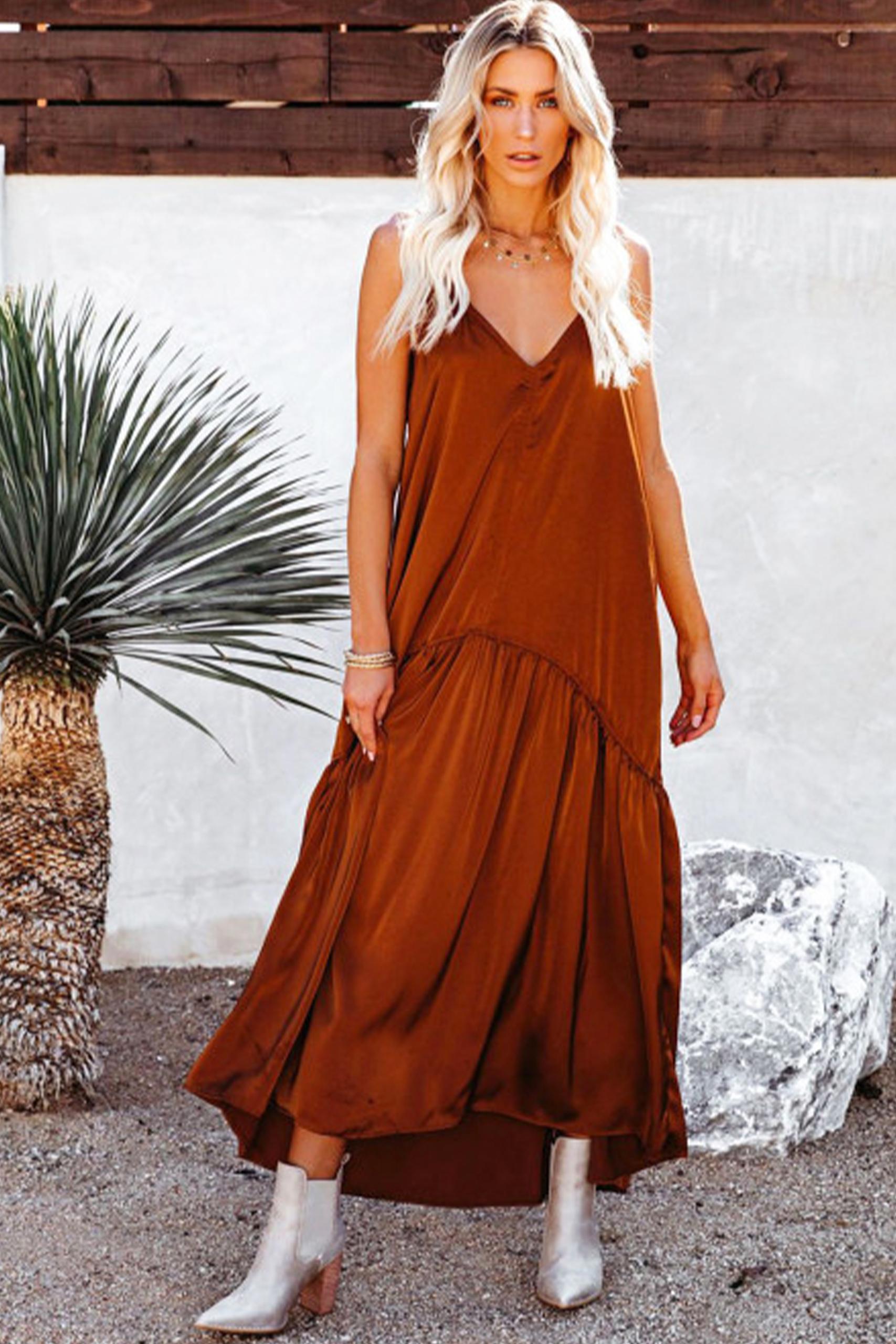 • Maxi ασύμμετρο φόρεμα | V neck | Ρυθμιζόμενες τιράντες