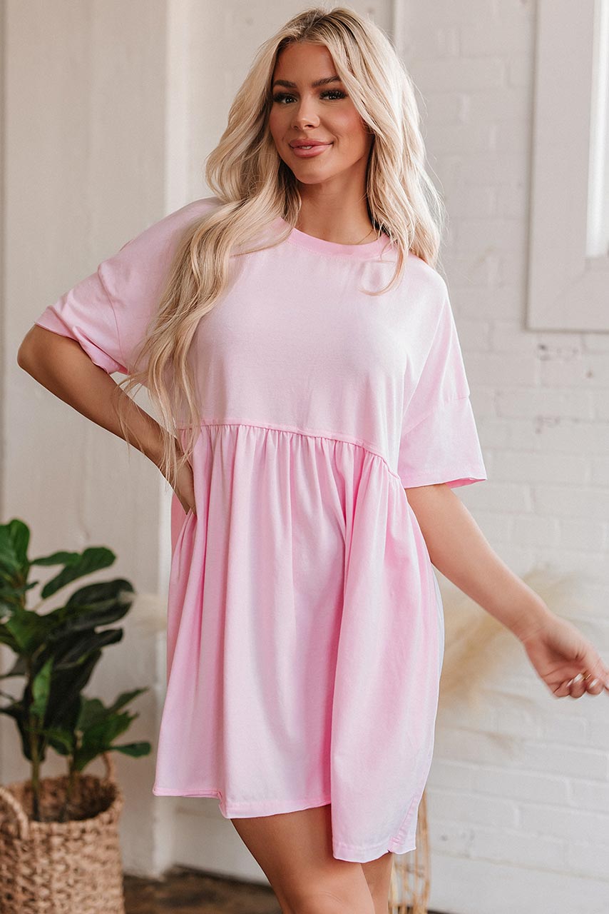 Το απόλυτο casual-chic κομμάτι που θα λατρέψεις! Αυτό το κοντό oversized φόρεμα σε baby ροζ απόχρωση είναι ό,τι χρειάζεσαι για effortless looks με ρομαντική διάθεση. Το μαλακό βαμβακερό ύφασμα χαρίζει άνεση και φυσική κίνηση, ενώ η ριχτή του γραμμή είναι ιδανική για χαλαρές βόλτες, καφέ με φίλες ή ακόμα και cozy work-from-home εμφανίσεις. Η στρογγυλή λαιμόκοψη και τα κοντά μανίκια προσθέτουν μια ανεπιτήδευτη κομψότητα, ενώ η ραφή στη μέση δίνει μια διακριτική αίσθηση girly σιλουέτας.
