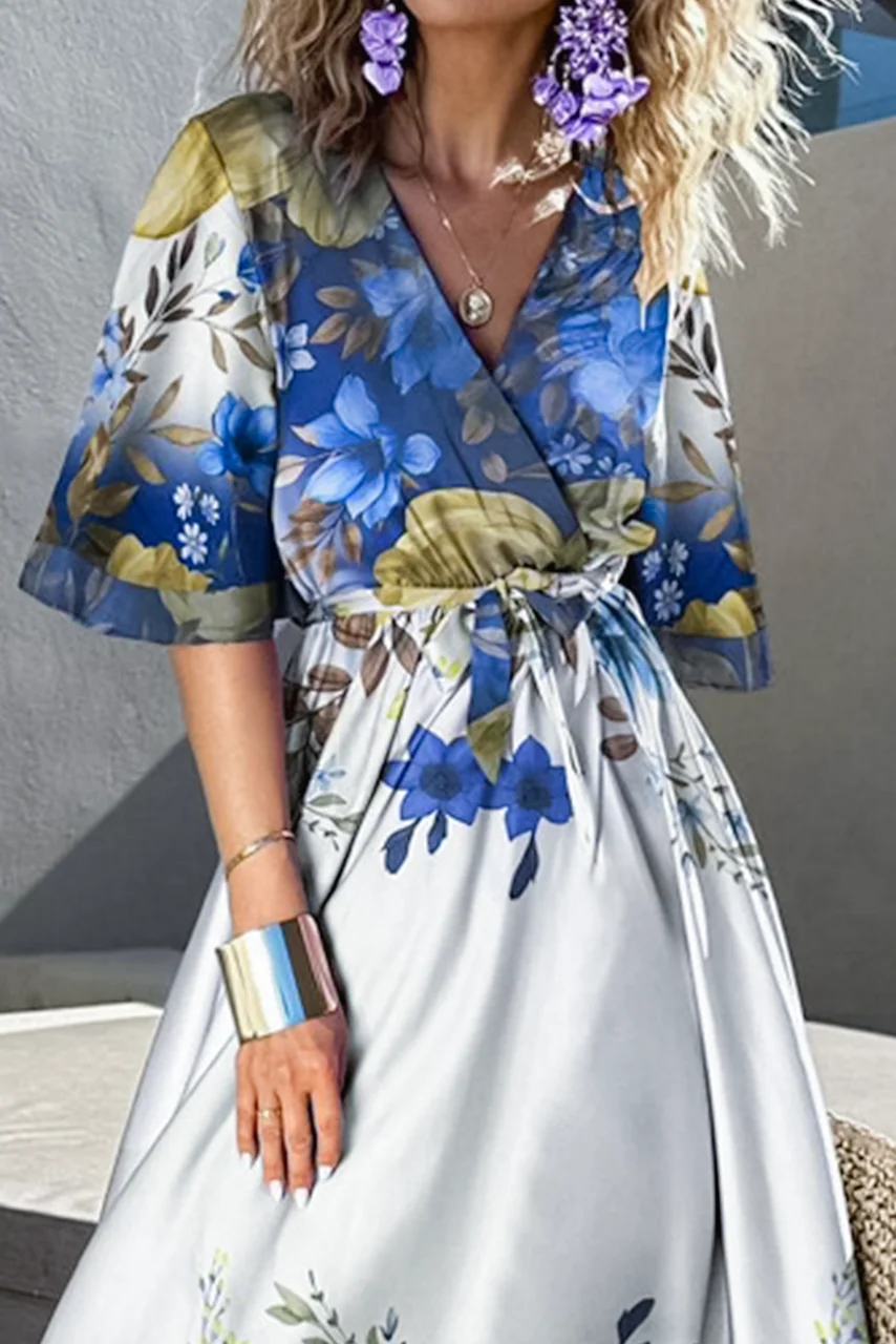 Κάνε statement φέτος την άνοιξη με αυτό το εκπληκτικό μάξι φόρεμα με φλοράλ σχέδιο. Η κρουαζέ λαιμόκοψη αναδεικνύει κομψά το ντεκολτέ, ενώ η ελαστική ζώνη στη μέση προσφέρει ευελιξία στην εφαρμογή και δημιουργεί μια θηλυκή σιλουέτα. Τα φαρδιά μανίκια προσθέτουν αέρινη κίνηση και ρομαντική αίσθηση, ιδανική για ανοιξιάτικες και καλοκαιρινές εμφανίσεις.