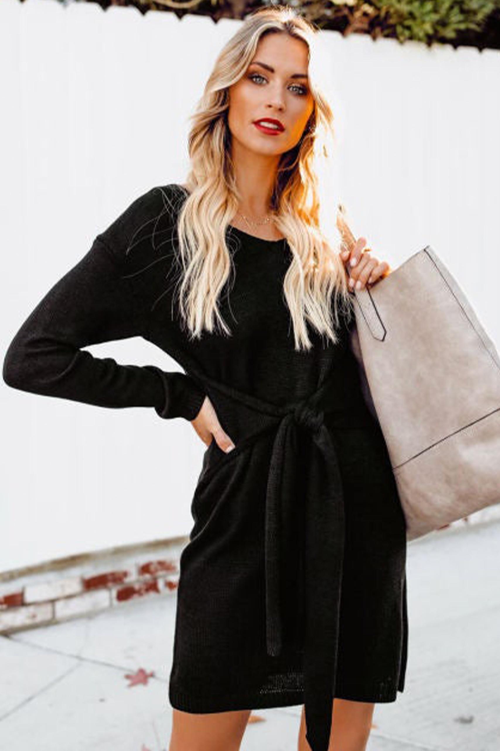 Front knot tie φόρεμα μακρυμάνικο με δέσιμο μπροστά σε διάφορες αποχρώσεις.