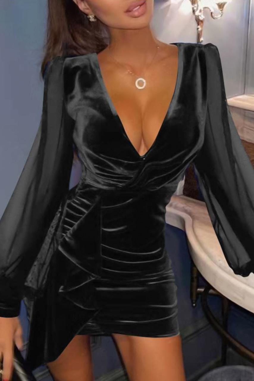 Glam βελουτέ mini φόρεμα σε μαύρο