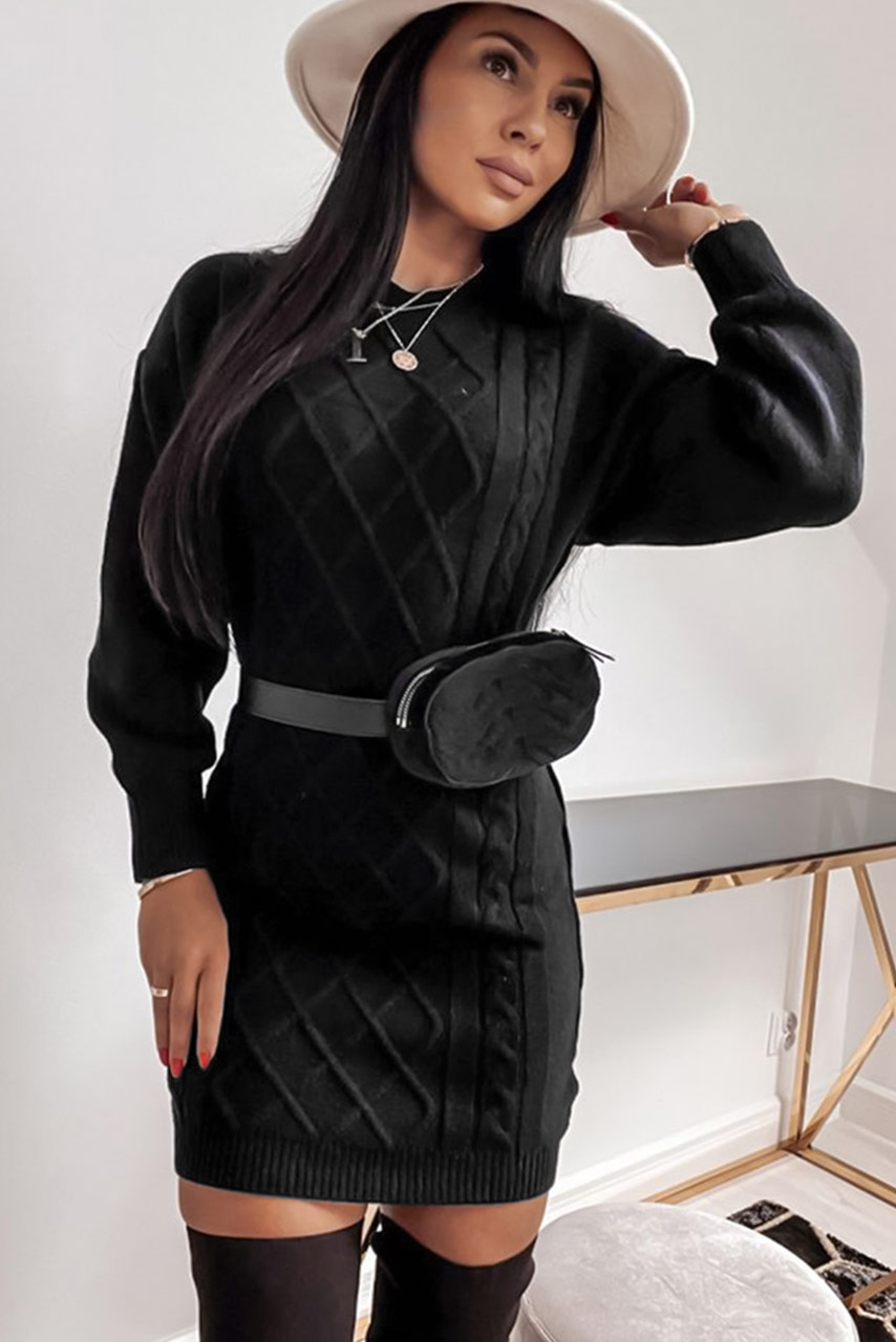 Sweater bodycon μακρυμάνικο φόρεμα με σχέδιο πλέξης και στρογγυλή λαιμόκοψη. Το ύφασμα του είναι μαλακό και κατάλληλο για τις casual βόλτες σου είτε με ψηλές μπότες είτε με sneakers.