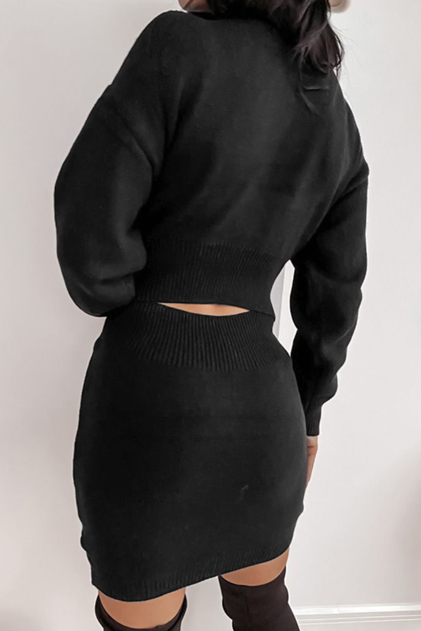Πλεκτό φόρεμα με άνοιγμα στην πλάτη σε μαύρο