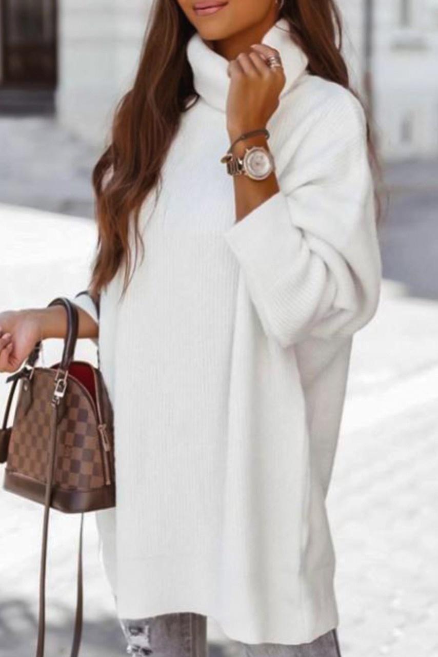 Turtleneck knitted dress σε λευκή αποχρώση. Αυτό το φόρεμα θα σας κρατήσει ζεστή και στυλάτη όλο τον χειμώνα.