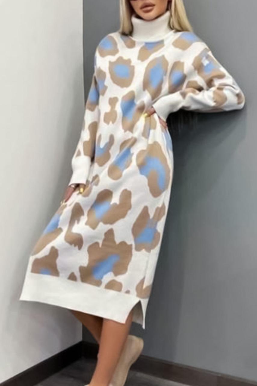 Leopard πλεκτό φόρεμα Leopard πλεκτό φόρεμα