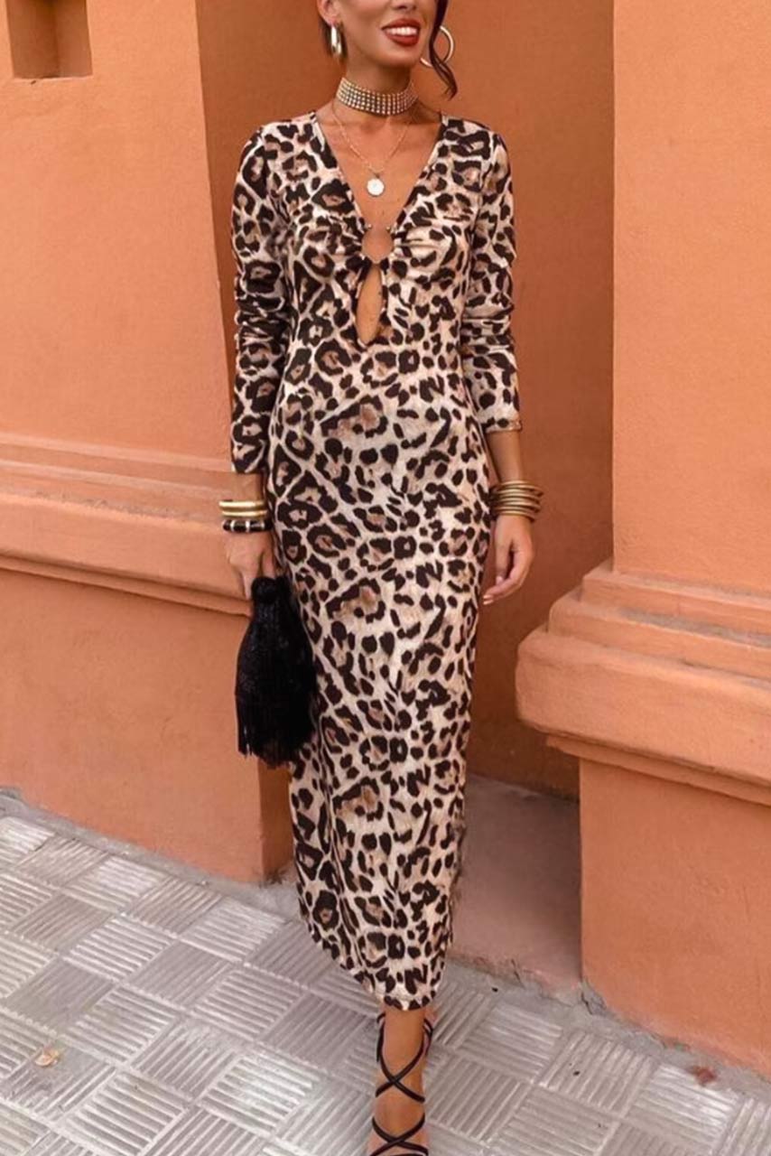Leopard μακρύ φόρεμα με κρίκο