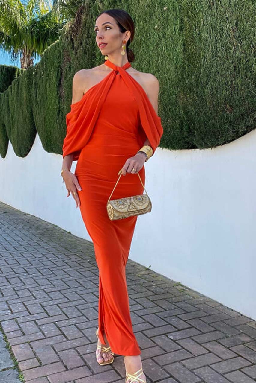 • Φόρεμα εφαρμοστό μακρύ αμάνικο | Σκίσιμο | Halter neck