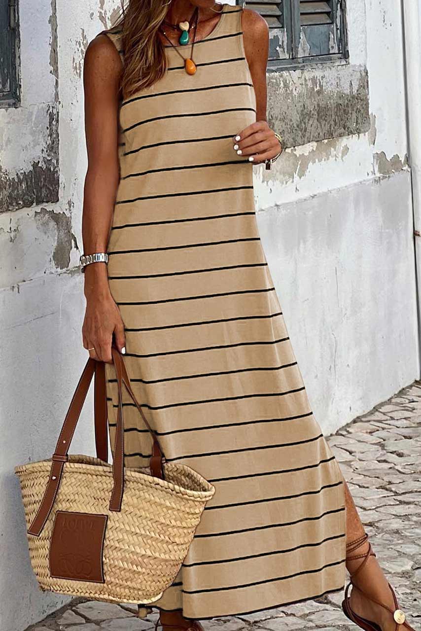 Μακρύ ριγέ φόρεμα με σκίσιμο Μακρύ ριγέ φόρεμα με σκίσιμο
