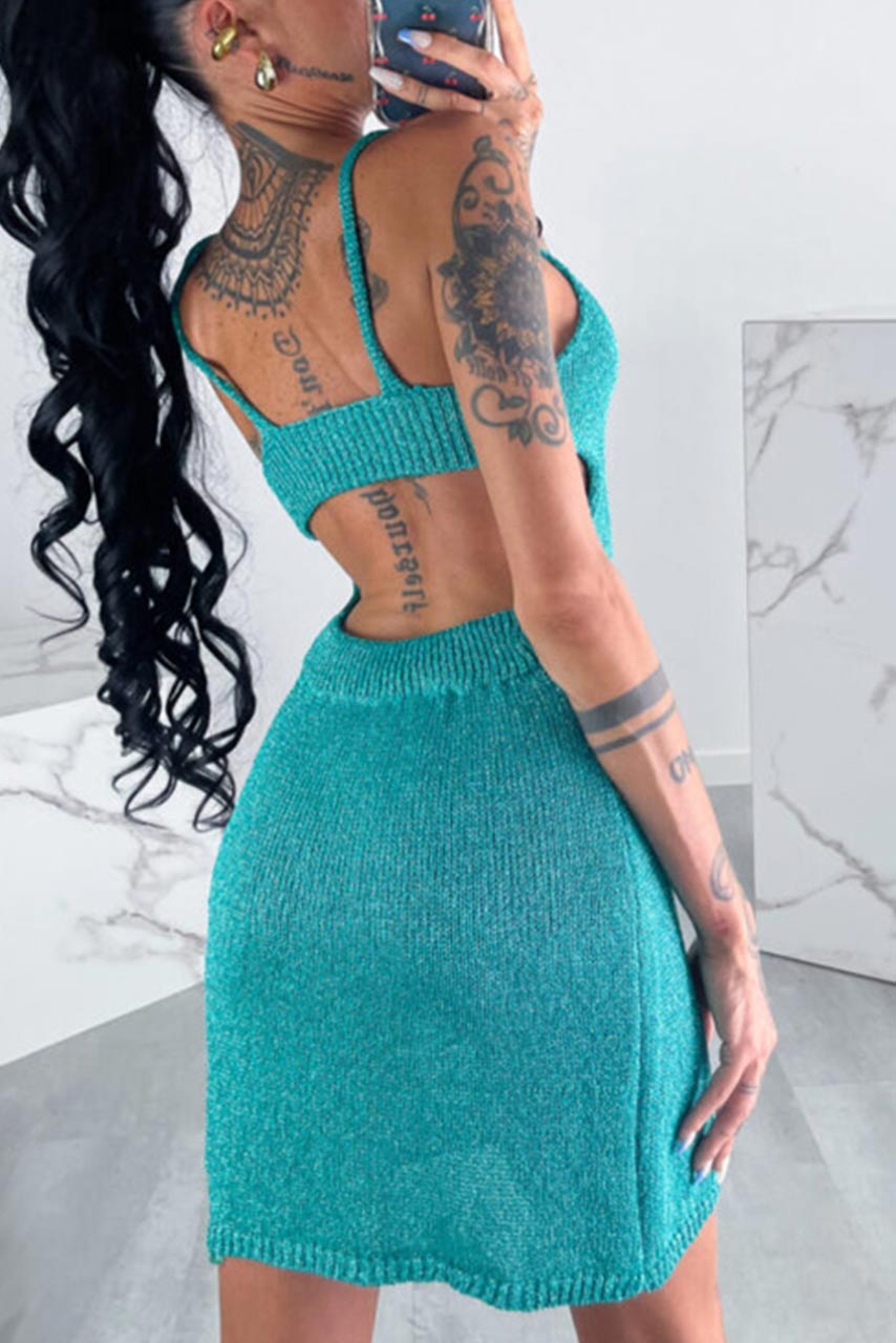 Lurex μίνι πετρόλ εξώπλατο φόρεμα με κρίκο