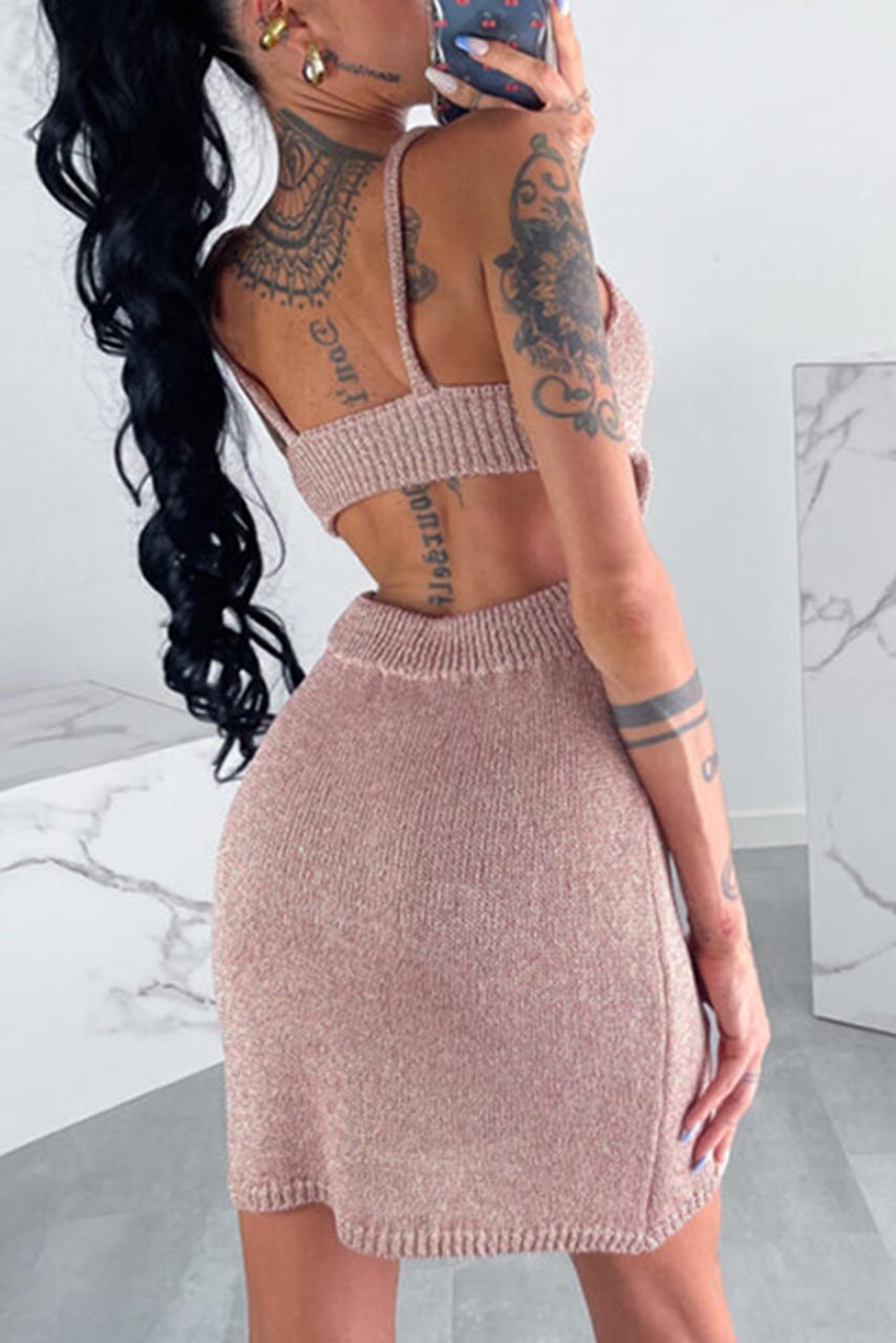 • Φόρεμα μίνι πλεκτό | Σταθερές τιράντες | Διακοσμητικός κρίκος στο στήθος | Εξώπλατο