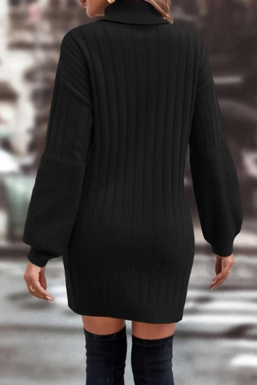 Πλεκτό με ιδιαίτερη πλέξη στα μανίκια και ζιβάγκο. Συνδυάστε το με ψηλές μπότες η sneakers.