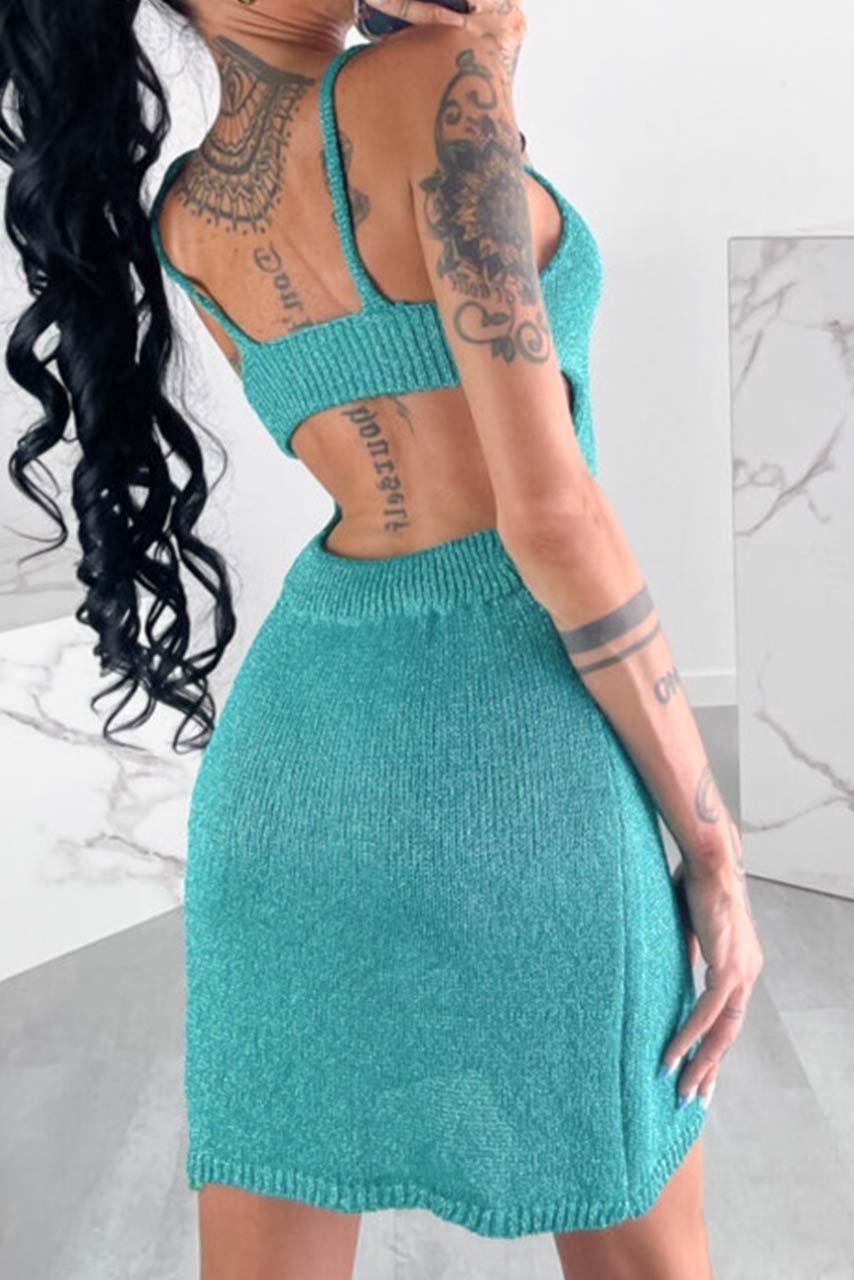 Το απόλυτο party dress που δεν πρέπει να λείπει από τη συλλογή σου! Το πετρόλ πλεκτό μίνι φόρεμα με εντυπωσιακό κρίκο στο μπροστινό μέρος και ανοιχτή πλάτη δημιουργεί ένα statement look που τραβάει τα βλέμματα. Το μεταλλιζέ ύφασμά του χαρίζει διακριτική λάμψη σε κάθε σου βήμα, ενώ η εφαρμογή του αγκαλιάζει ιδανικά το σώμα.
