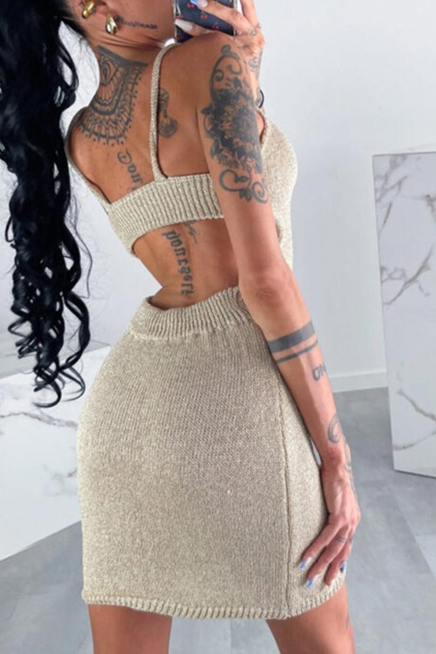 Πλεκτό χρυσό κοντό φόρεμα με κρίκο μπροστά Πλεκτό χρυσό κοντό φόρεμα με κρίκο μπροστά