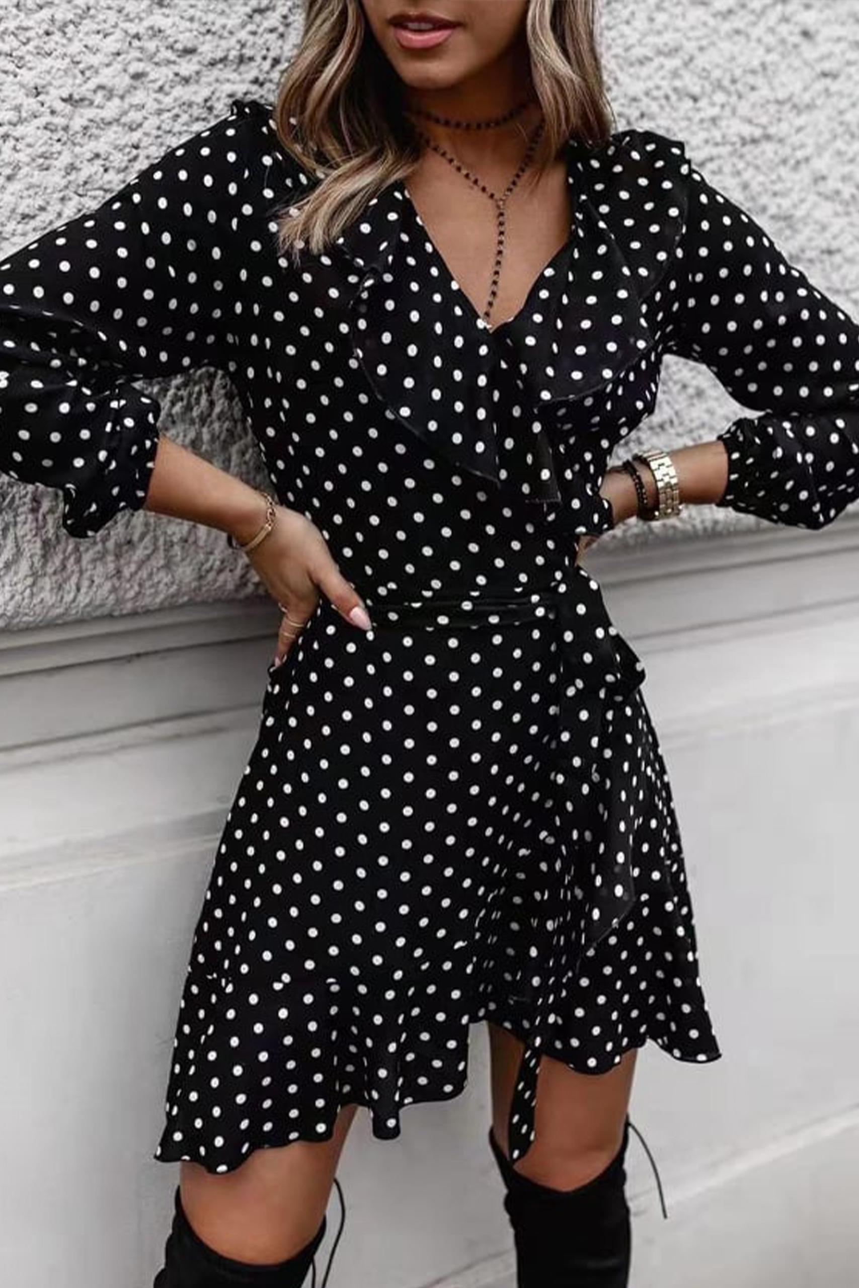 Πουά φόρεμα με βολάν