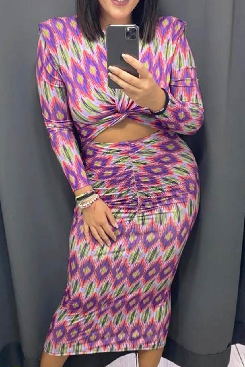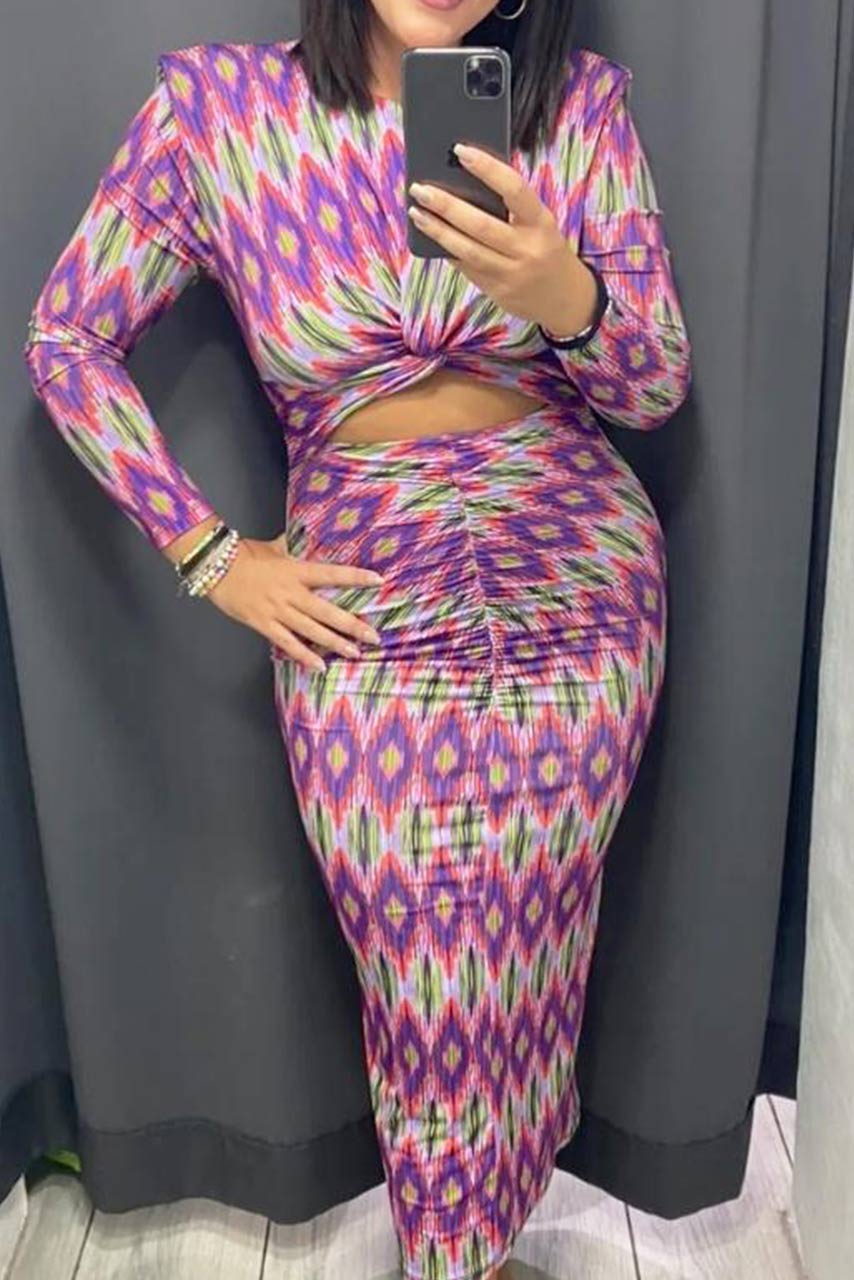 Εμπριμέ πολύχρωμο φόρεμα με cut out μωβ
