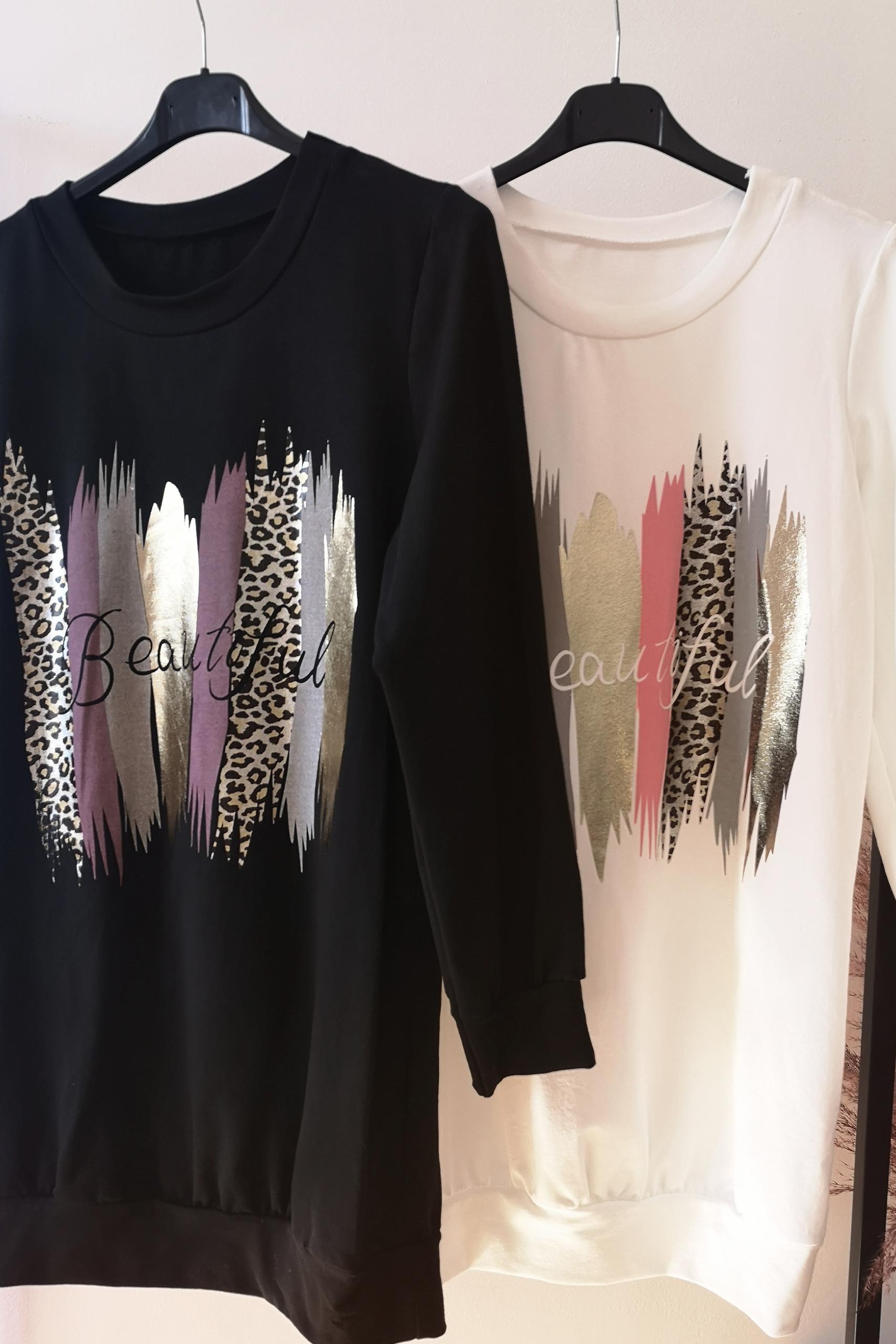 Longline oversized φούτερ φόρεμα με πολύχρωμη splash στάμπα σε δύο χρώματα.