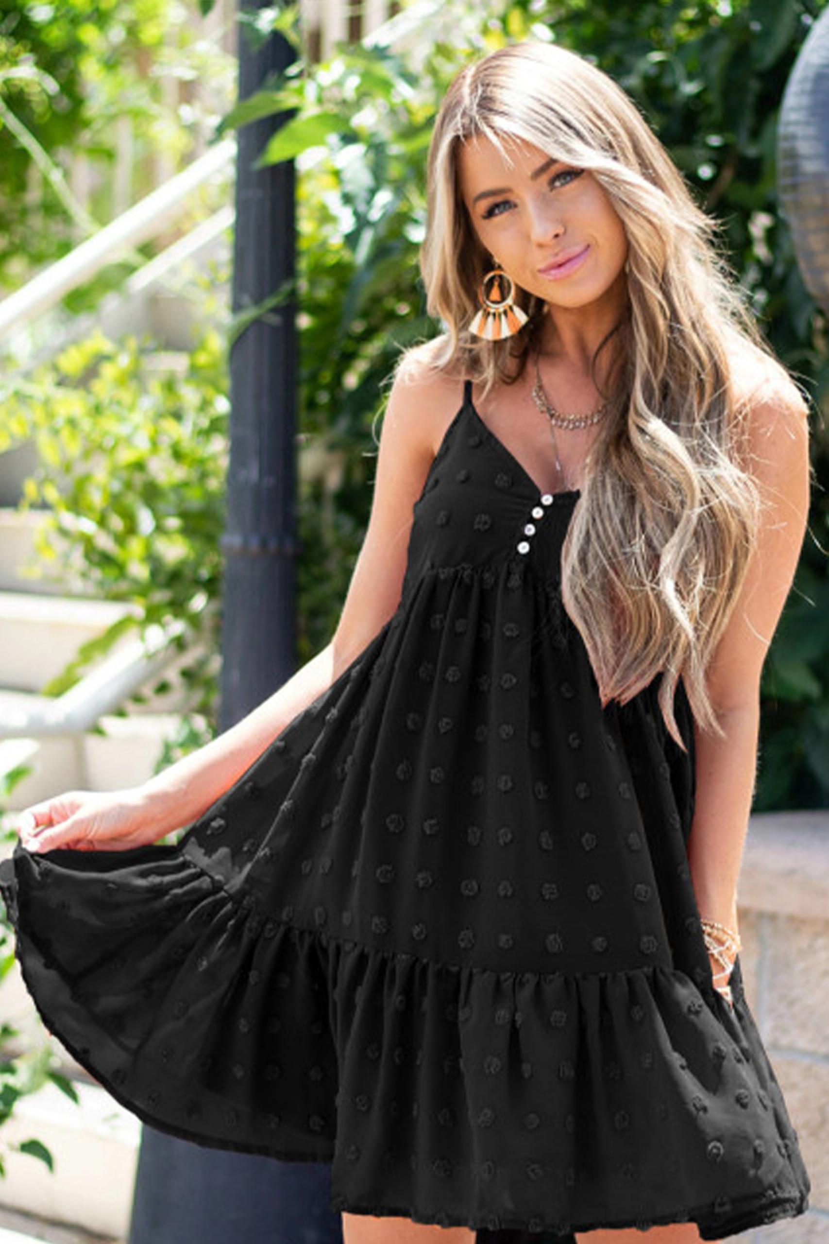 Mesh mini φόρεμα με ραμμένα πουά και λεπτές τιράντες.