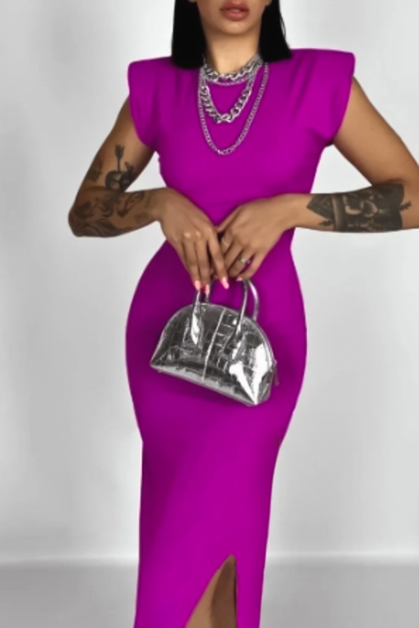 • Φόρεμα αμάνικο με βάτες | Ελαστικό bodycon | O neck | Σκίσιμο
