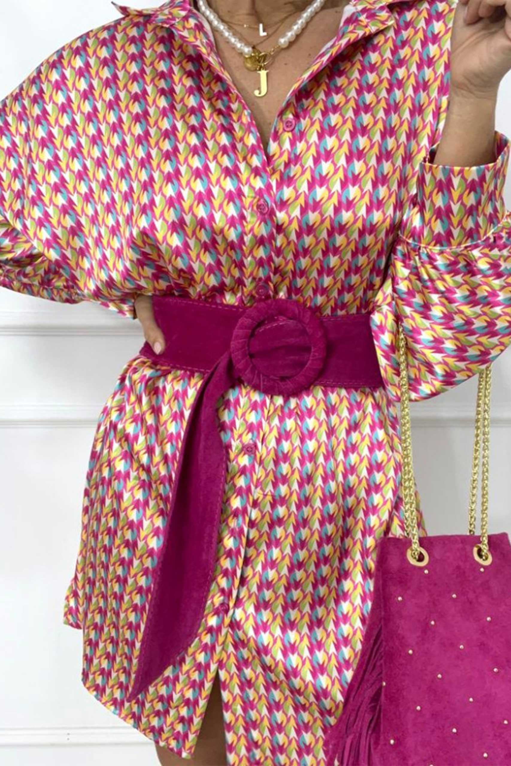 Retro printed φόρεμα σεμιζιέ με πολύχρωμο εμπριμέ pattern σε δύο αποχρώσεις.