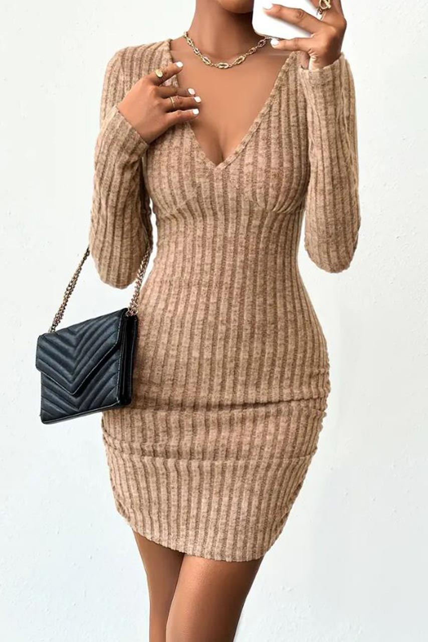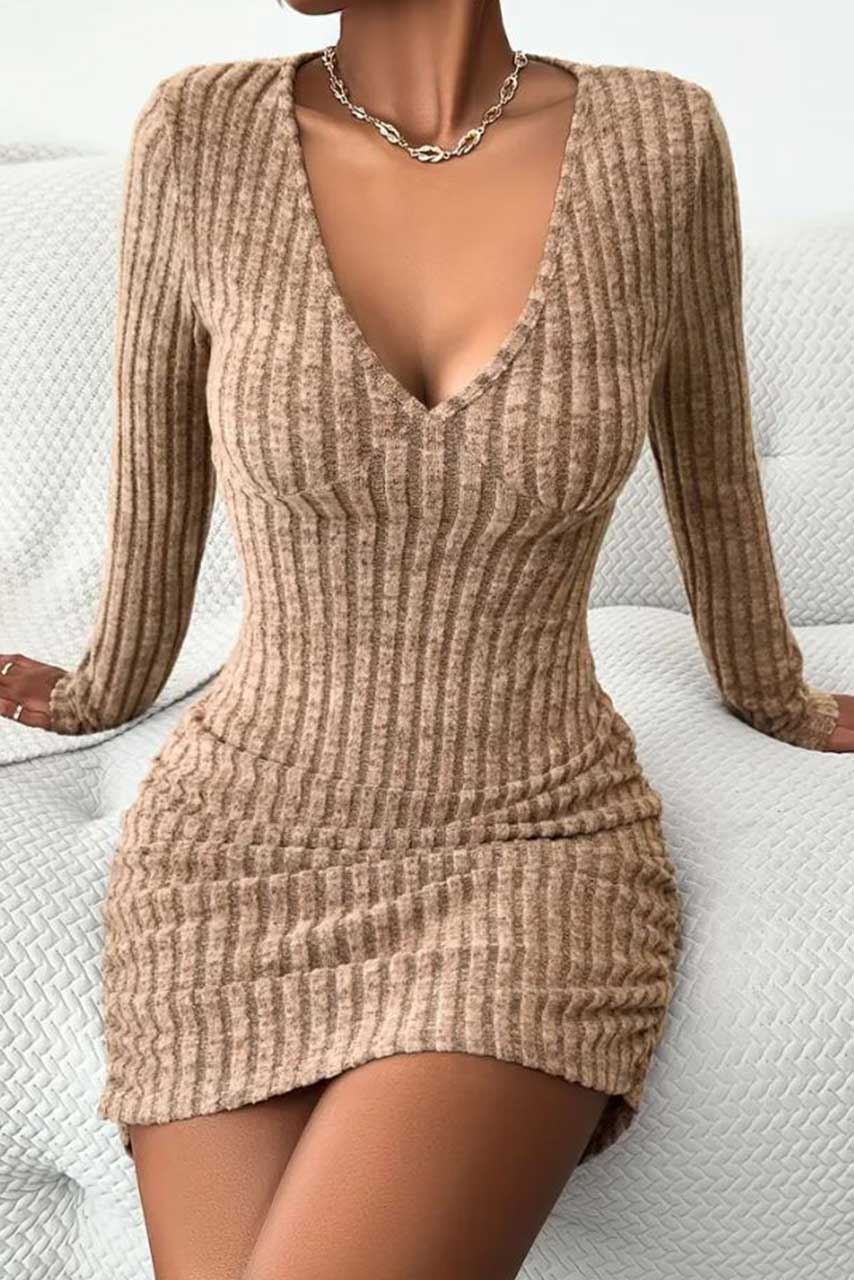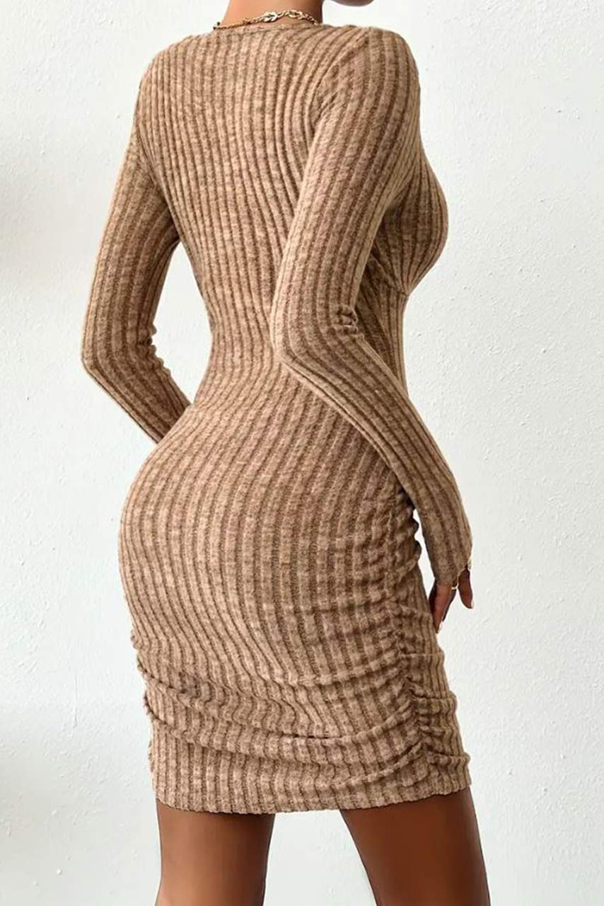 Rib εκρού μίνι εφαρμοστό φόρεμα